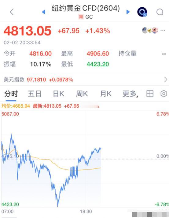 快讯!纽约金价大幅反弹突破4800美元每盎司,原因曝光你敢买吗:金价反弹暴涨!2026年2月2日晚上20:30分,国际金价大幅反弹超4800美元盎司,日内反弹超400美元,反弹涨幅超10%。 相信不少关注黄金投资的朋友都被这波行情惊到了——毕竟就在前几天,金价还经历了史诗级暴跌,从5598.75美元/盎司的历史高位直接跳水,单日跌幅超12%,一度跌到4400美元附近,让不少追高的投资者慌了神。 而2月2日晚上的这波反弹,相当于把日内跌幅几乎抹平,上演了一场惊心动魄的“过山车”,也让大家忍不住问:这波反弹到底靠什么?现在敢入手吗? 根据纽约商品交易所数据,当天金价最低触及4423.20美元/盎司,创下四周新低,直到晚间才迎来强势反弹,突破4800美元关口,日内反弹超400美元、涨幅超10%,虽然尾盘有所回落,但这波反弹力度足以搅动全球黄金市场。 这种极致波动的背后,不是单一因素导致的,而是短期情绪修复与长期支撑逻辑共同作用的结果。 第一个核心原因,也是最根本的支撑,就是全球央行购金潮的持续发力。根据权威数据,2026年1月全球央行购金量达到1200吨,中国央行已经连续14个月增持黄金,波兰等多个国家也在跟进增持。 各国央行疯狂囤金,本质是为了对冲美元信用风险,在去美元化的大趋势下,黄金作为硬通货的价值被持续认可。 这种大规模、持续性的购金需求,就像给金价装了个“安全垫”,即便前期出现暴跌,也能快速吸引资金回流,推动价格反弹。 第二个核心原因,美联储的货币政策大方向没有变,依然是支撑金价的重要推手。虽然此前特朗普提名偏鹰派的沃什出任美联储主席,引发市场对紧缩政策的担忧,导致金价暴跌,但市场逐渐认清一个现实:美联储今年降息的大趋势并未反转,市场普遍预期年内会有2—5次降息。 降息意味着美元会走弱,大家持有美元的收益降低,而黄金作为非信用资产,持有成本会下降,自然会成为更多资金的选择。 这波反弹,也是市场对美联储宽松预期的理性回归,对冲了短期鹰派政策的担忧。 第三个核心原因,地缘政治风险和全球经济的不确定性,始终让黄金的避险属性发挥作用。当前中东、东欧等地的冲突仍在持续,全球债务高企、经济复苏乏力,这些不稳定因素让大家心里没底,而黄金自古以来就是“避险神器”,每当市场恐慌情绪升温,资金就会涌入黄金市场寻求庇护。 前期金价暴跌更多是短期投机资金踩踏和政策预期波动导致的,一旦恐慌情绪缓解,避险资金的回流就会推动金价反弹,这也是此次反弹的重要动力之一。 除此之外,短期市场情绪的修复和投机资金的抄底,也放大了反弹力度。1月底金价的史诗级暴跌,让不少前期积累的获利盘被清洗,市场估值回归合理区间,吸引了一部分抄底资金入场。 同时,黄金市场的供需缺口也在支撑价格,2026年黄金矿产供给预计仅增长1.8%,而需求端受央行、私人投资和ETF的驱动持续增加,缺口可能扩大至320吨,这种供需失衡也为反弹提供了基础。 现在敢买吗?其实答案没有绝对的好坏,关键看你的投资逻辑。如果是长期配置,比如想对冲货币贬值、分散资产风险,那么黄金确实值得入手,但建议不要追高,可等待回调到4400—4800美元的核心波动区间分批布局,并且控制仓位,不要超过总资产的20%。 如果是短期投机,就要格外谨慎,当前金价波动极大,美联储政策预期、地缘冲突等任何风吹草动都可能引发大幅涨跌,普通人很容易被割韭菜,尤其是高杠杆的黄金衍生品,尽量不要碰。 还要提醒大家,近期多家机构都预判2026年金价会保持高位震荡,虽然长期趋势偏强,但短期波动会非常剧烈,可能出现5%—20%的回调。 我们普通人投资黄金,尽量选择实物金条、黄金ETF这类稳妥的方式,避开高溢价的金饰,因为金饰回收折价率高,并不适合投资。 总而言之,2月2日的金价反弹,是长期基本面支撑与短期市场情绪修复共同作用的结果,并非偶然。黄金作为硬通货,长期价值毋庸置疑,但短期投机风险极高,理性配置才是王道,切勿被短期暴涨暴跌冲昏头脑。 MCN双量进阶计划