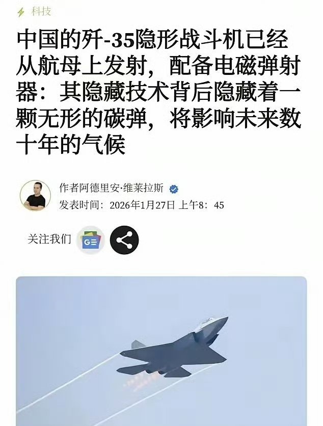 连J35配电磁弹射器都能扯到碳排放上,这是没被现实武器物理毒打过