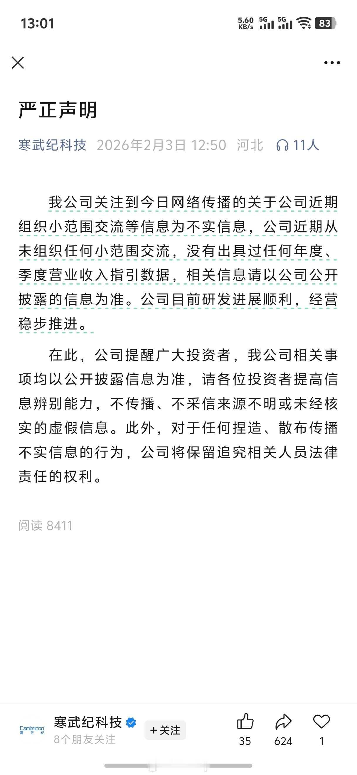 寒武纪的最新声明