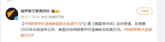 特朗普:立即逮捕奥巴马,他已经涉嫌在美国发动政变。 2月1日,特朗普公开要求逮捕美国第44任总统奥巴马,理由是奥巴马一直在美国煽动政变,依据是美国国家情报局局长图尔西·加巴德公布的与“拉沙盖特”事件相关的文件。 想搞懂这场美国前总统级别的正面互怼,得先摸清图尔西·加巴德的身份底色和政治立场——毕竟是她公布的文件点燃了这场风波。 作为特朗普一手提名、2025年2月在参议院勉强通过任职的国家情报总监,加巴德的政治路线向来曲折多变。 她曾以民主党人身份担任国会议员、参选总统,2022年退出民主党后逐渐向保守派靠拢,2024年正式加入共和党并公开为特朗普站台,这样的任职背景自带浓厚党派滤镜,也让她披露的文件从一开始就裹着争议。 加巴德此次曝光的机密文件,源自众议院情报委员会共和党人多年前草拟的调查报告,经过解密流程后才得以公开,核心内容直指2016年美国大选期间的情报操作黑幕。 依据文件内容及加巴德的公开说明,奥巴马在任期间,曾暗中授意中央情报局等情报机构特工,伪造俄罗斯干预2016年总统大选的虚假信息,刻意将特朗普竞选团队与俄罗斯绑定,意图削弱特朗普胜选的合法性,甚至动摇美国民众对本国民主制度的信任基础。 特朗普之所以死死攥着这份文件不放,关键原因在于他这些年一直把“通俄门”调查当成针对自己的政治迫害,而加巴德公开的文件,刚好成了他反击的利器。 早在2016年大选落幕後,美国司法部启动的“通俄门”调查耗时近两年,最终没能证实特朗普团队与俄罗斯政府勾结,但这场调查却持续撕裂美国政坛,让两党对立变得愈发激烈。 特朗普始终坚称,这场调查是奥巴马政府主导的政治阴谋,目的就是推翻他的胜选结果,如今找到了所谓“实锤”,自然不会放过追责的机会。 随后,特朗普不仅在“真实社交”平台发文喊话,要求司法部门立刻逮捕奥巴马,还在多场公开活动中反复强调这一诉求,直言奥巴马是这场未遂政变的“主谋”,希拉里等民主党核心人士也深度参与其中。 他还辩解,自己这么做不是单纯的报复,而是要追究那些滥用职权者的责任,让试图违背美国民众意愿的人付出代价。 这番表态很快得到其支持者的强烈响应,MAGA阵营甚至发起倡议,要求尽快启动对奥巴马的司法调查。 面对指控,奥巴马团队没有沉默,发言人帕特里克·罗登布什罕见发表声明,强硬驳斥特朗普的说法,称这些指控纯属无稽之谈,是特朗普为转移公众注意力玩的拙劣把戏。 声明中还提到,参议院情报委员会此前的调查报告早已确认,俄罗斯虽曾尝试影响2016年大选,但并未成功操控任何选票,特朗普的指控根本站不住脚,同时暗指特朗普此举是为了掩盖自己深陷的爱泼斯坦案舆论危机。 有意思的是,在特朗普发声后,加巴德也迅速跟进,接受媒体采访时再次表态,称奥巴马政府时期确实存在将情报机构工具化、政治化的行为,那些伪造的情报就是为针对特朗普的长期政变计划铺路。 她还透露,除了已经公开的文件,还有大量相关机密文件即将解密,到时候会提交给司法部,为追责提供更充足的依据。 不过这一说法也遭到质疑,美国中央情报局前分析员指出,加巴德的报告是带着预设结论拼凑的,只挑选了贴合自身立场的材料,缺乏客观公正性。 这场前总统之间的指控闹剧,早就不只是个人恩怨,更成了美国两党政治博弈的又一集中爆发点。 眼下美国政坛分裂越来越严重,共和党和民主党在各类议题上针锋相对,特朗普此次公开叫板奥巴马,本质上也是为了讨好自身支持者,巩固政治基本盘,同时转移舆论对爱泼斯坦案等争议事件的关注,为后续的政治动作造势。 美国主流媒体也纷纷聚焦这场风波,CNN、《纽约时报》等先后发文解读,认为特朗普的指控缺乏实质性证据,更像是一场政治表演。而加巴德作为特朗普提名的国家情报总监,她公布的文件难免带有政治偏向,很难成为有效的司法依据。 还有媒体预测,随着2026年中期选举临近,这类政治缠斗会持续升级,这场围绕大选旧案的追责风波,大概率会不断发酵,成为影响美国政坛走向的重要因素。 截至目前,美国司法部还没就特朗普的诉求给出明确回应,也没有宣布启动对奥巴马的相关调查,这场风波暂时还停留在舆论博弈阶段。 但不难预见,不管后续是否会启动司法程序,这场指控都会给美国政治生态带来深远影响,不仅会进一步消耗民众对美国民主制度的信任,还会让两党对立陷入更深的僵局,而特朗普与奥巴马之间的恩怨,也会随着更多文件解密,变得更加复杂。