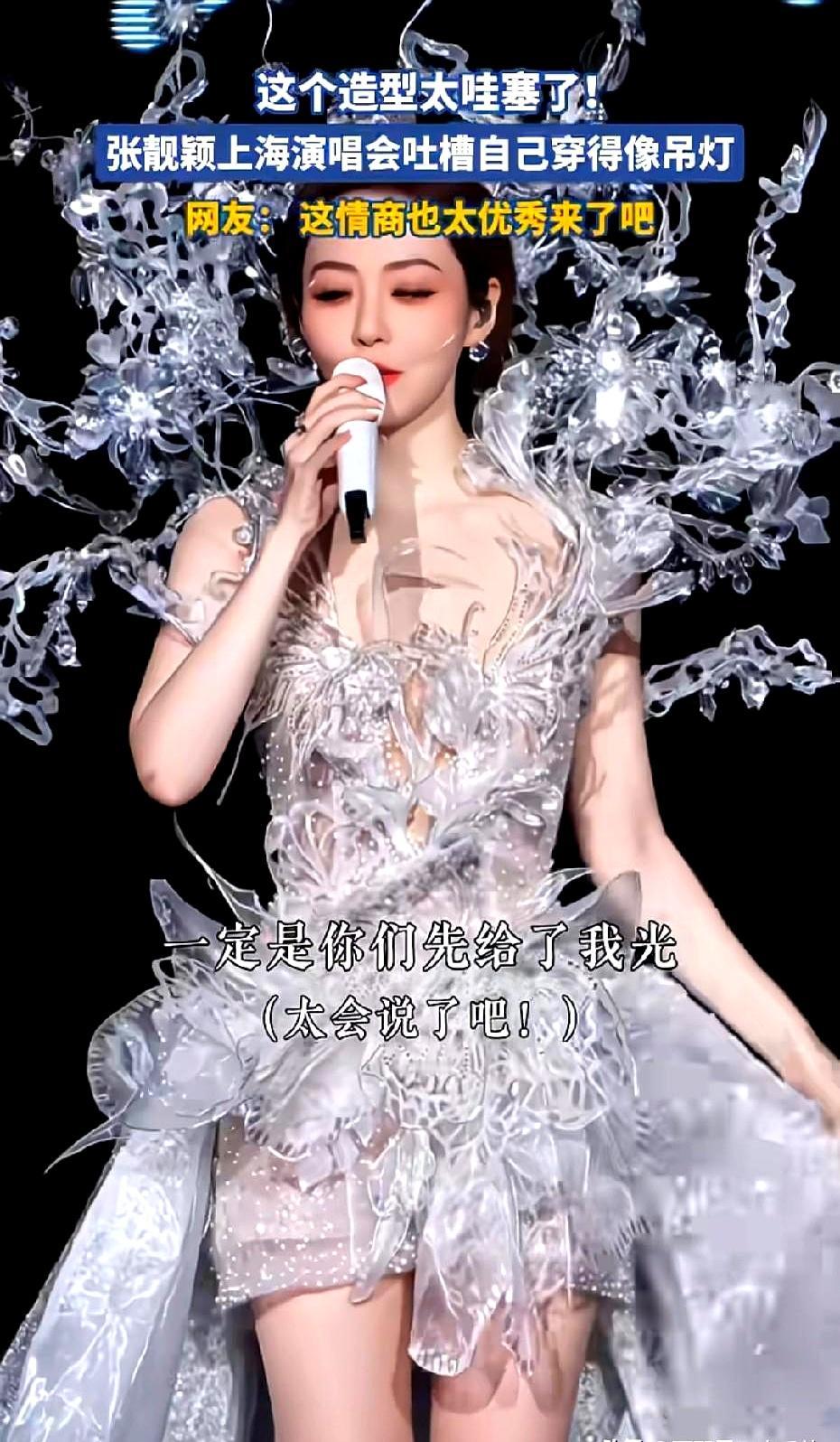 盯着屏幕看了三秒,下意识揉了揉眼。 张靓颖这上海演唱会的造型,简直就是个人形自走大吊灯。 第一眼觉得还得是女明星敢穿,第二眼真觉得这光折射得有点“喧宾夺主”了,差点没看清脸。 但这姐们儿脑子转得是真快,直接自嘲是吊灯,还补了一句:水晶得站在光里才能亮,这光是观众给的。 这话说得,漂亮。 反观我前两天见的一个创业新贵,拿了轮融资,尾巴翘天上去了,觉得自己是天生发光体,完全忘了是资方和市场在给他打光。 结果呢? 数据一跌,立马现原形。 张靓颖这身衣服也就看个热闹,但这番话里的通透,才是真把路走宽了。 人呐,哪怕浑身挂满钻石,也得记得是谁帮你开了灯。