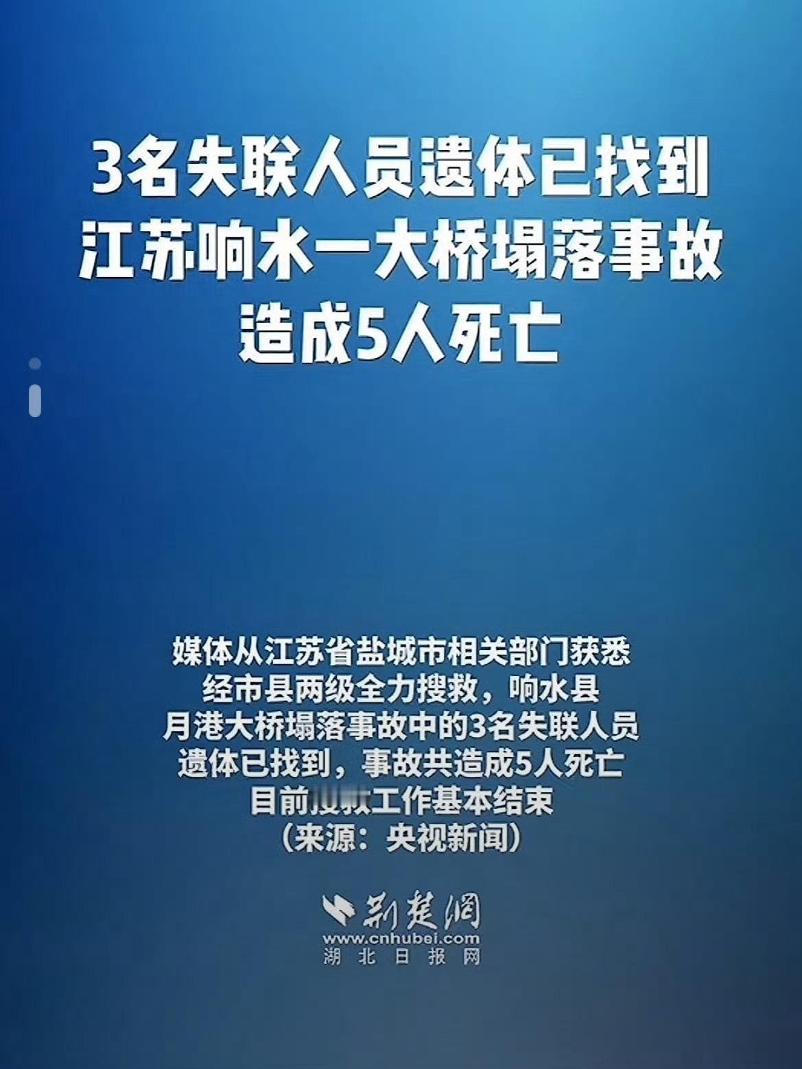 江苏盐城大桥塌落致5人死亡愿逝者安息生者坚强,后续处置与追责能给公众一个清晰交代。