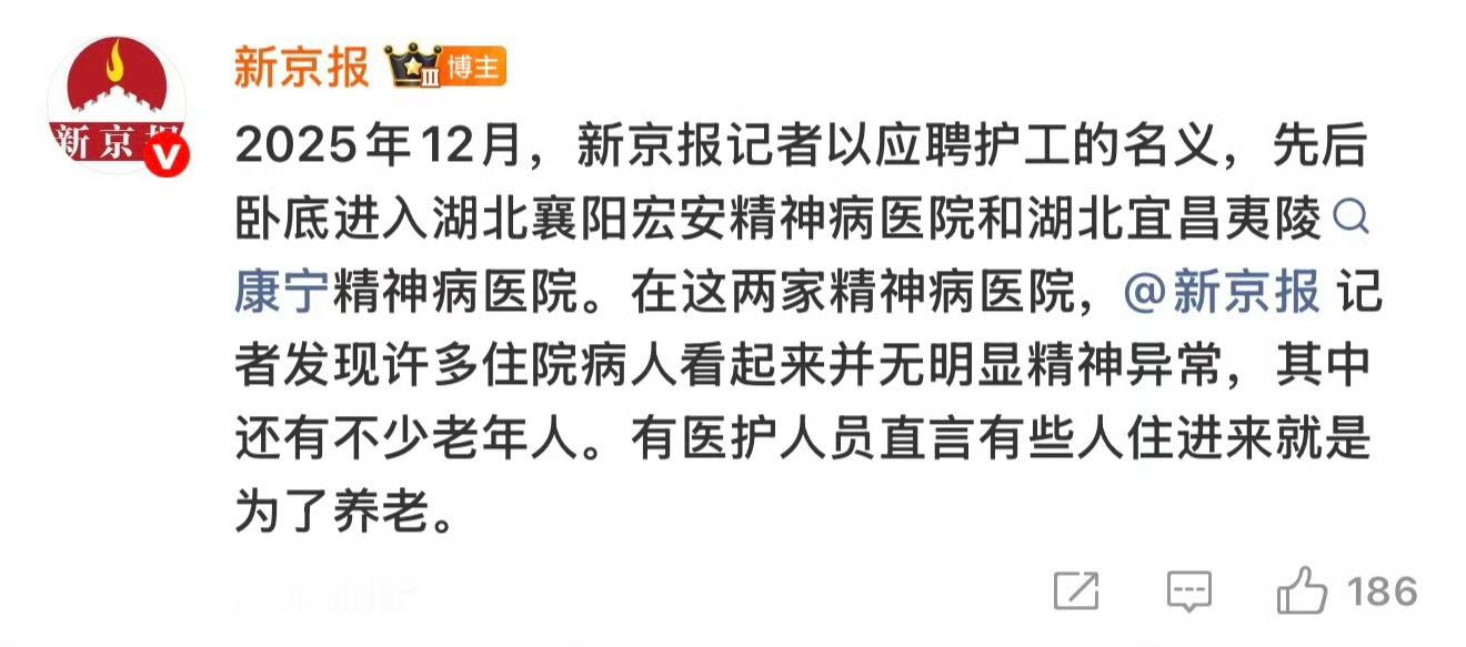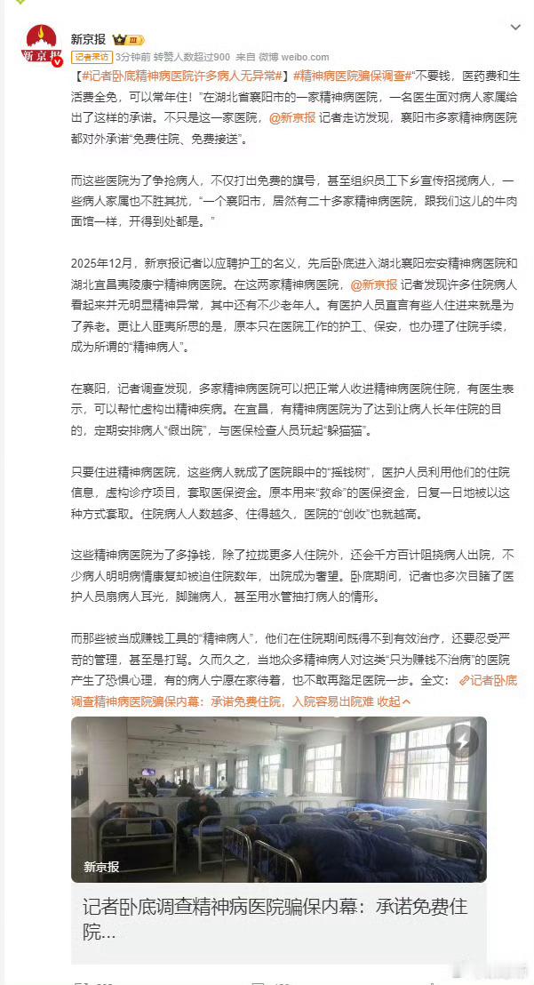 记者卧底精神病医院许多病人无异常有点可怕其实 进去了感觉就算是正常人也出不来,而且大部分看都是老年人,可能家里人也不想管直接送进去吧,唉能不能好好查一查啊