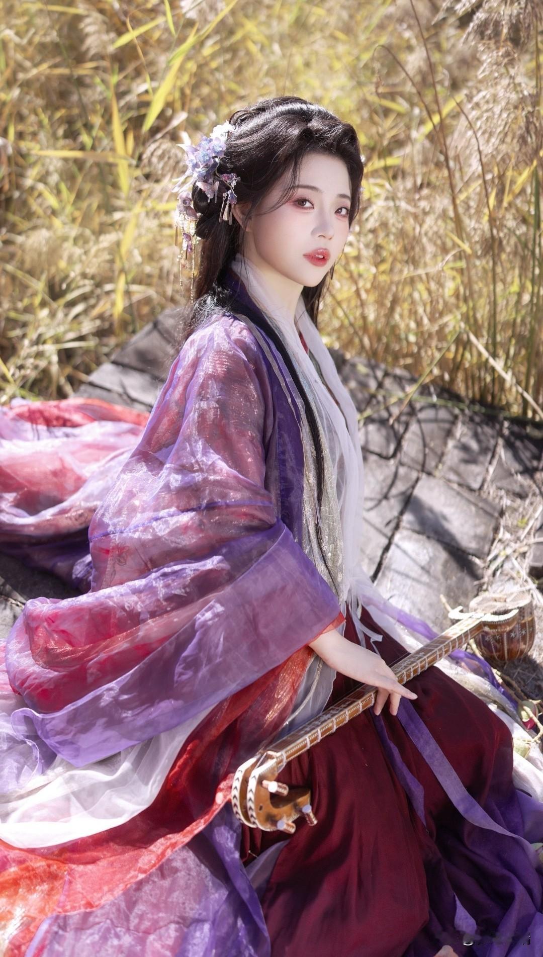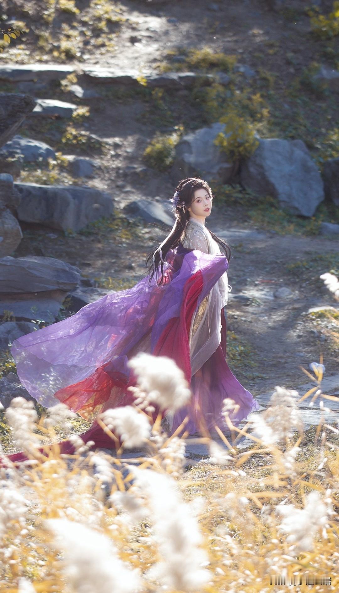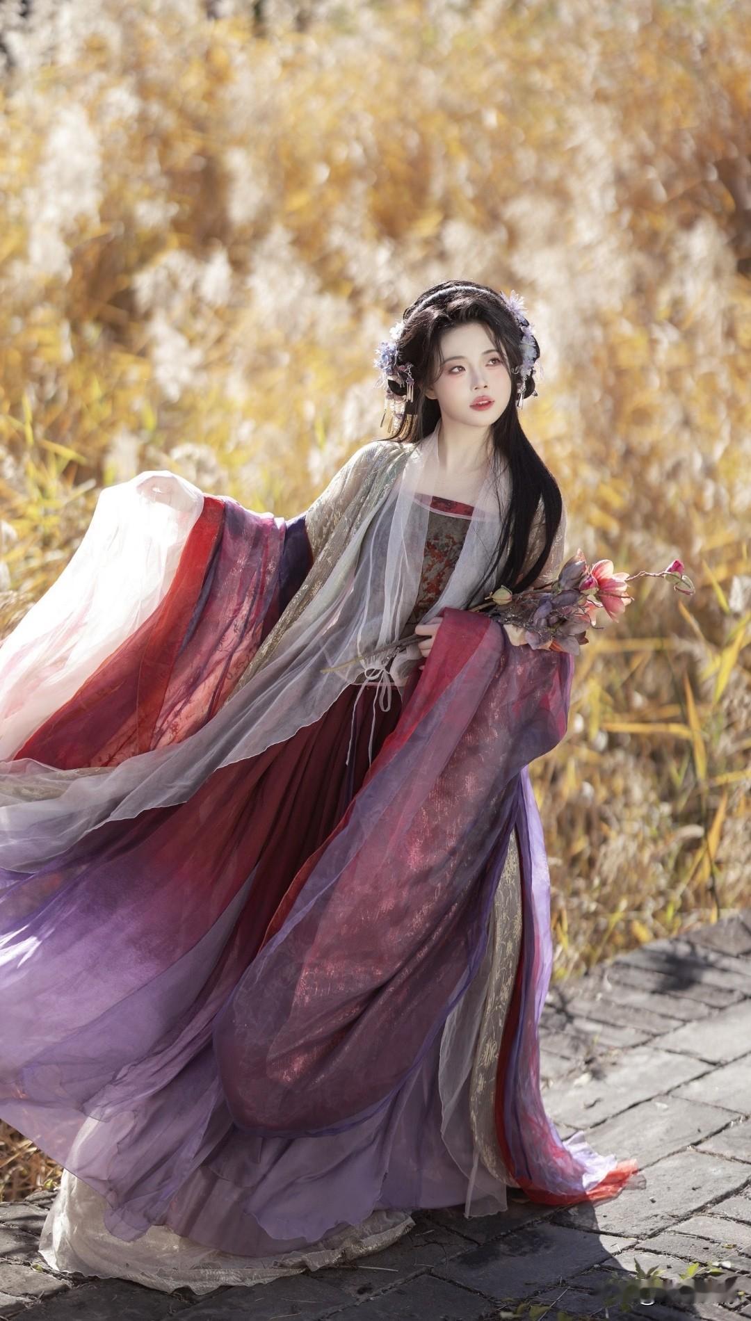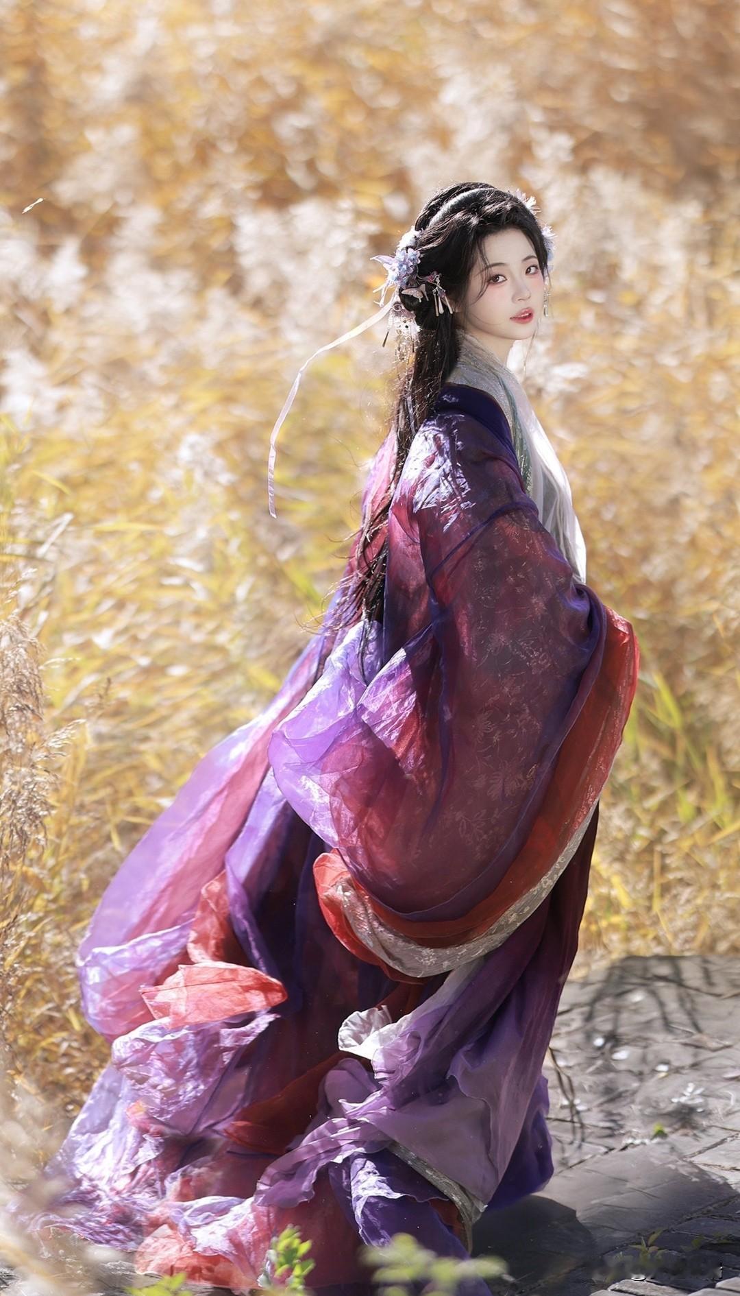 古风少女漫步在秋日田野,裙摆随风飘扬,如梦似幻。
