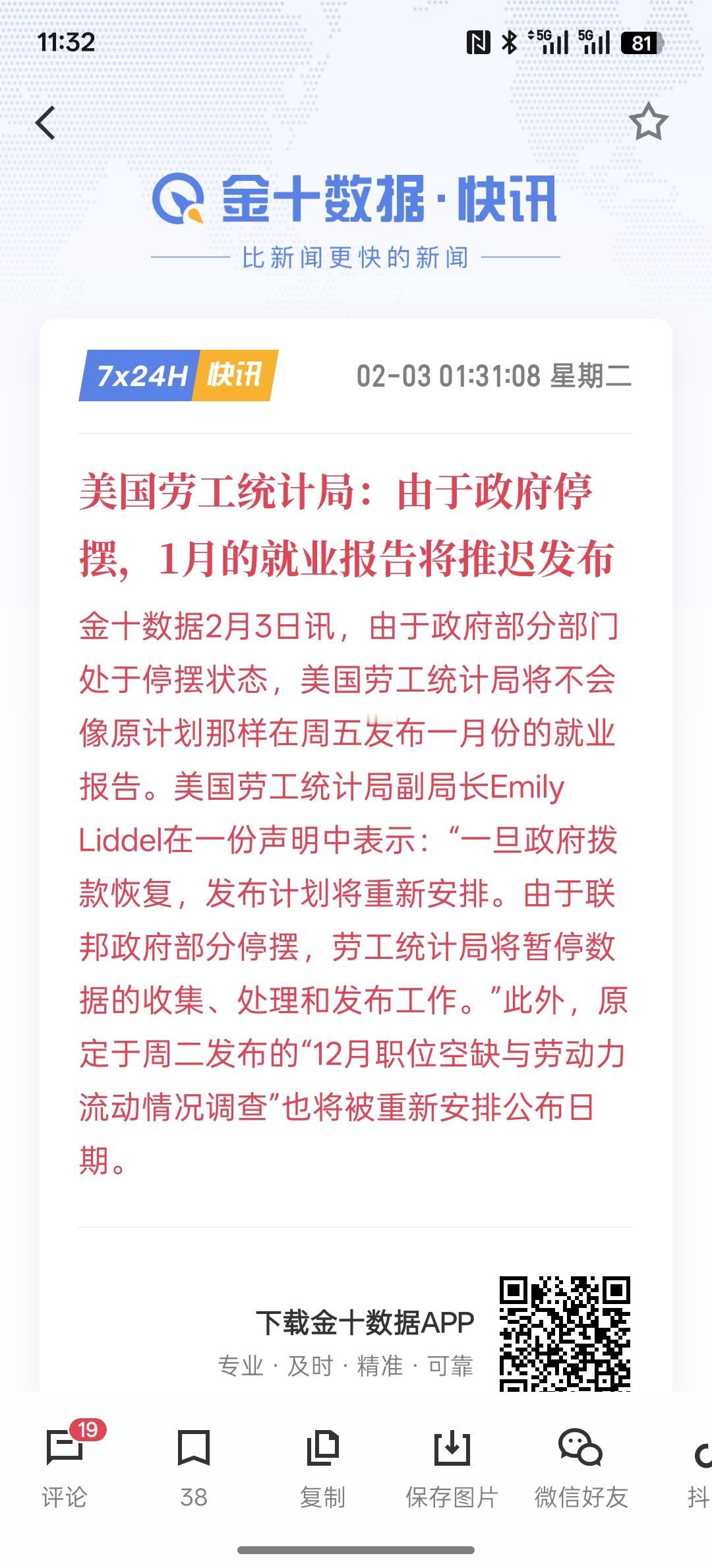 美国劳工统计局:由于政府停摆,1月的就业报告将推迟发布,前美国的劳工数据还没有公布,但政府又要停摆,因为资金不到账,政府部门可能又要关门! 美联储如果换掉鲍威尔,下一任美联储主席如果按照特朗普的提名,接下来可能就会为特朗普政府服务!如果特朗普有需求,要降息可能真的会降息