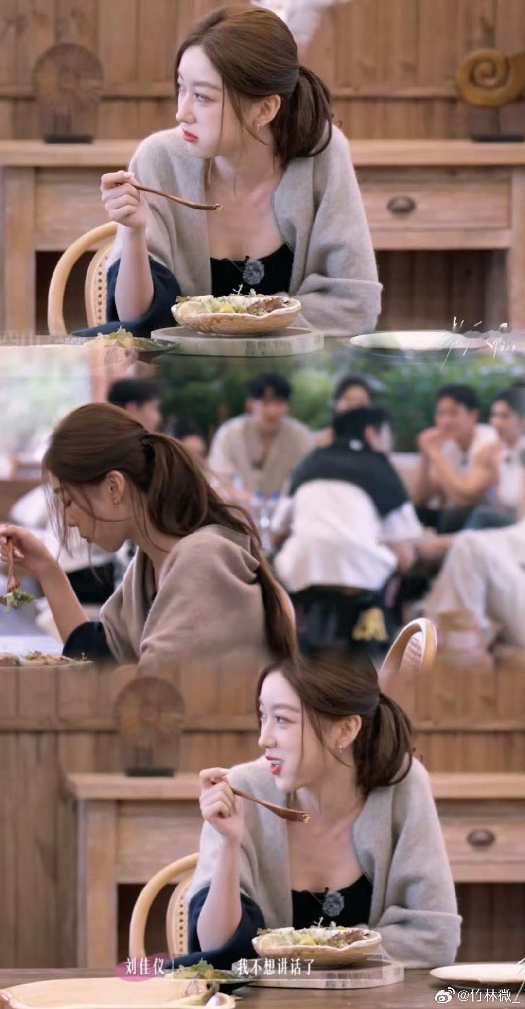 陈好吃饭的时候两腿岔开胳膊撑在腿上,这姿势真豪放