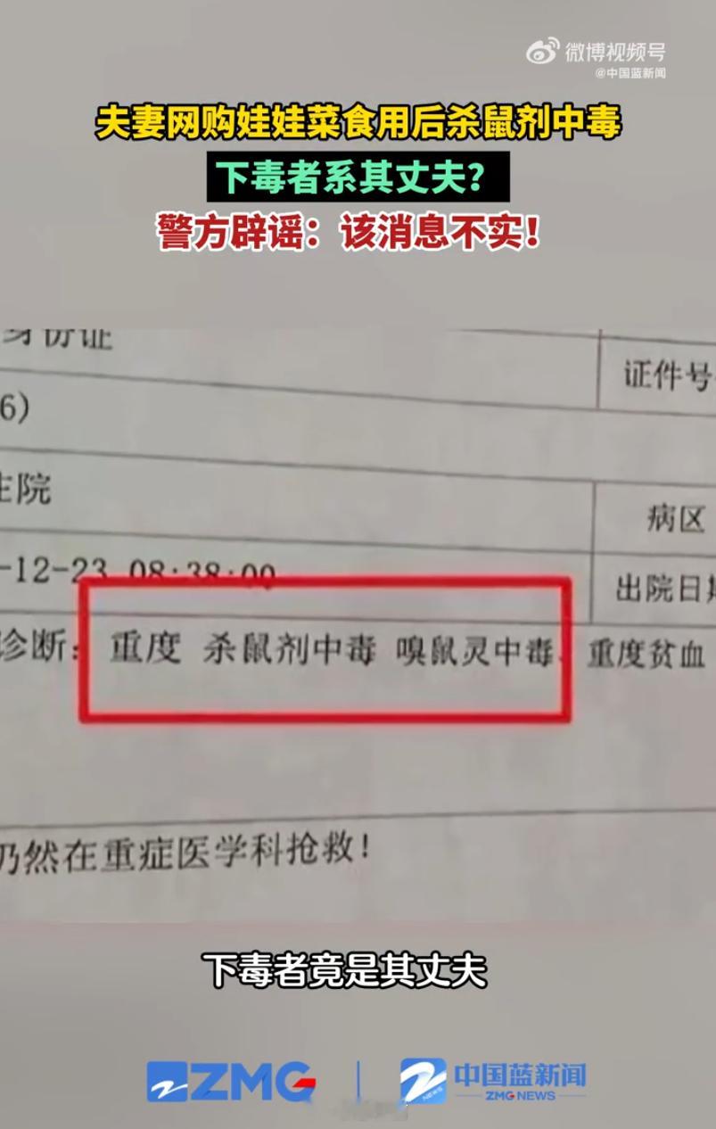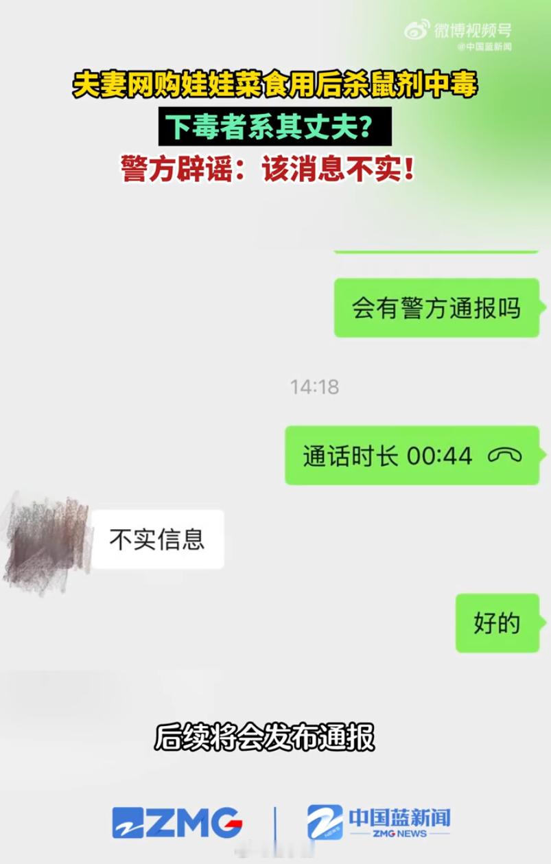 警方辟谣夫妻网购娃娃菜中毒系丈夫下毒
