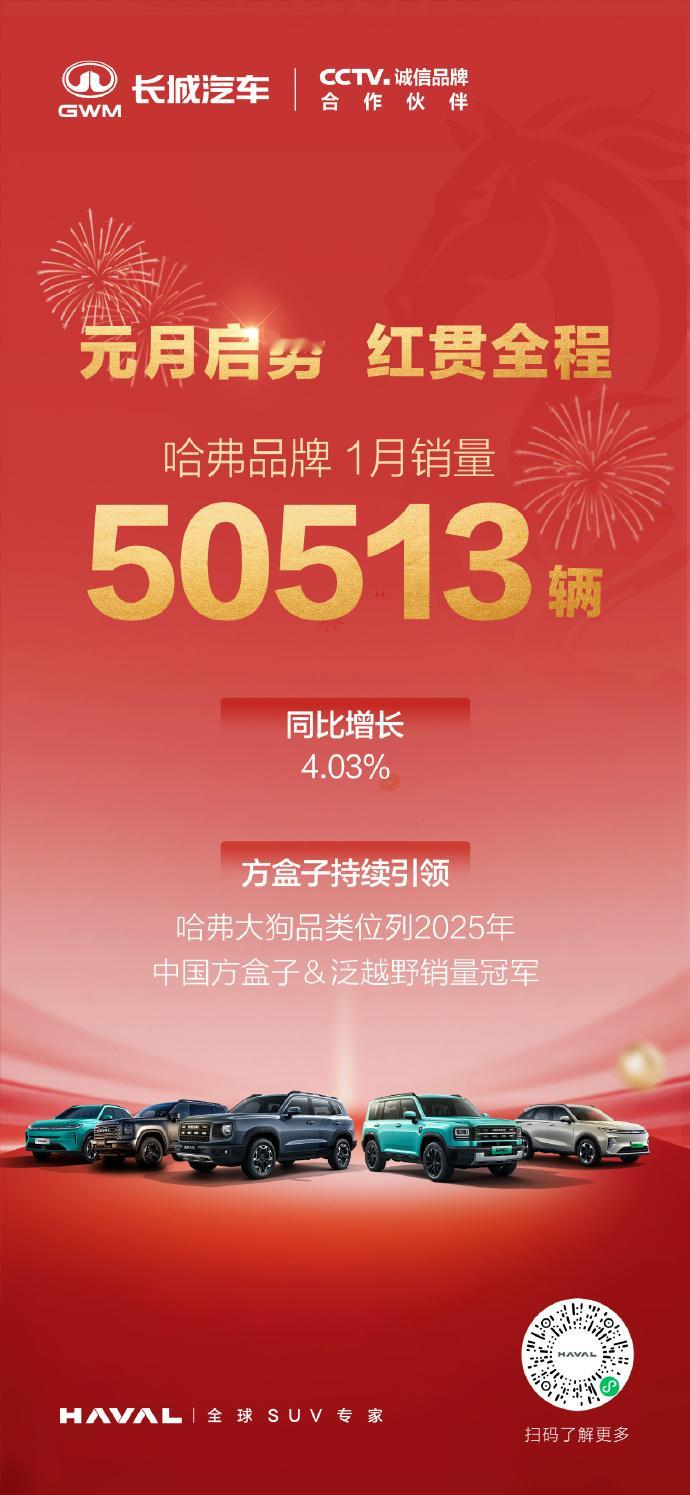 哈弗1月销量50513辆 虽迟但到,公布1月销量战绩:销量50513辆,同比增长