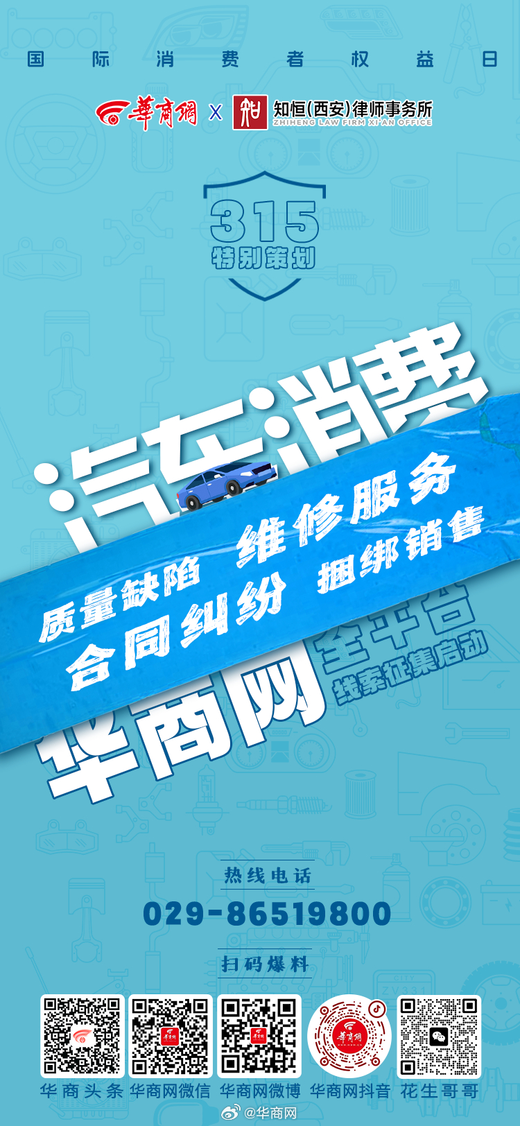 【华商网全平台“3·15”线索征集启动】质量缺陷、维修服务、合同纠纷、捆绑销售 ……如果你在日常生活消费中合法权益受到侵害,欢迎提供新闻线索,邀请专业律师 为你解答维权问题 #消费维权不止315#