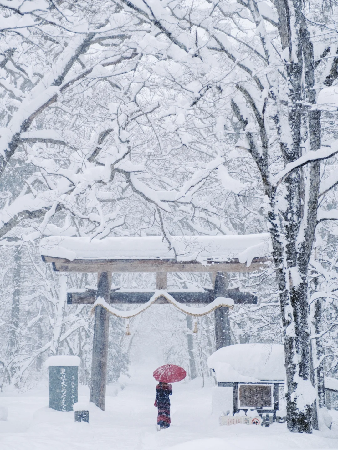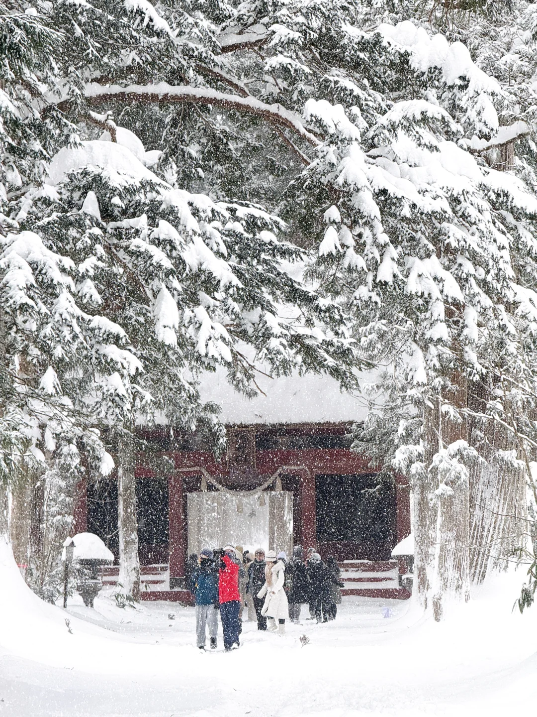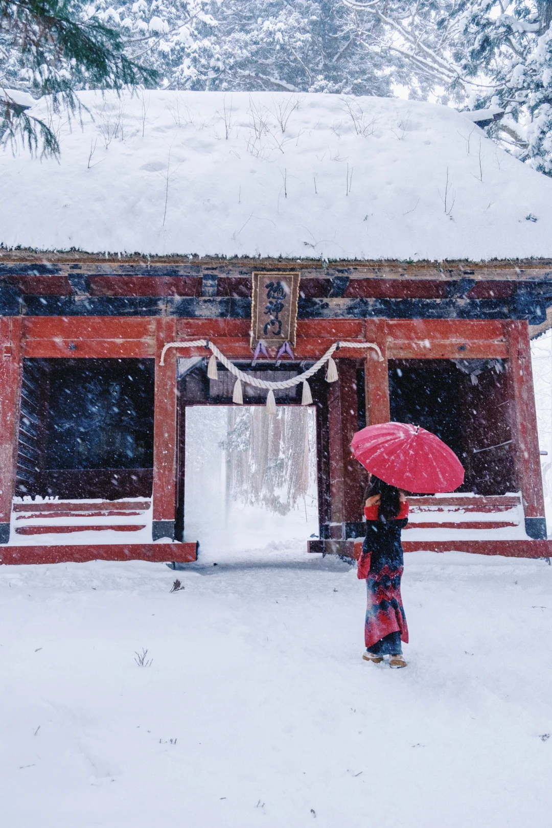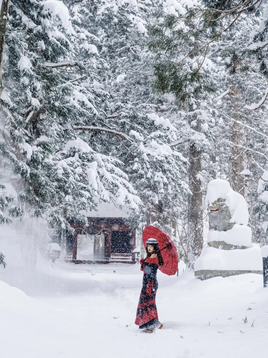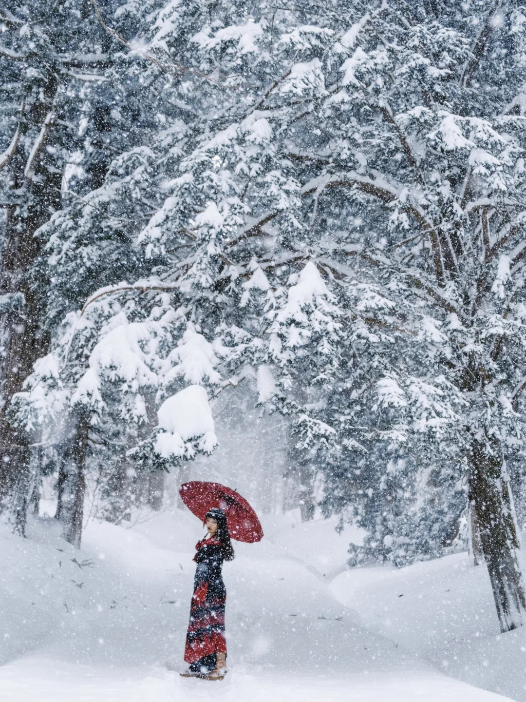 穿搭建议:雪地里和红色很搭!!记得带伞或者帽子,一路上很容易雪崩