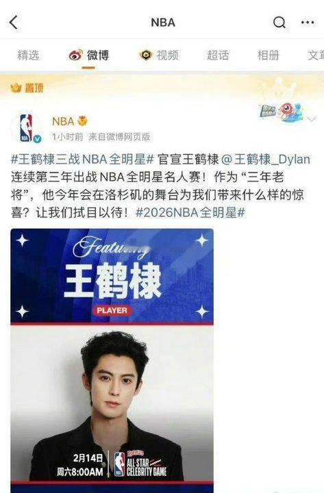 NBA置顶王鹤棣nba置顶官宣王鹤棣NBA置顶王鹤棣啦!