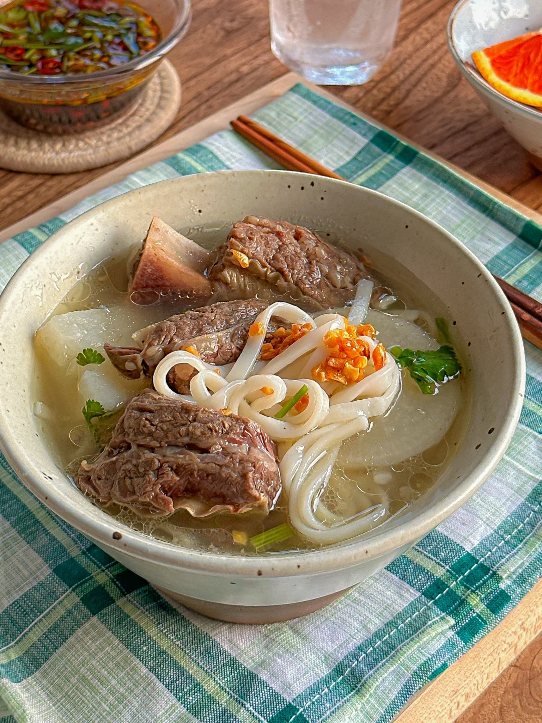 汤底超级鲜美 喝起来香浓但不腻! 苹果和白萝卜的搭配 炖出来的肋条肉香十足 更加软糯脱骨 不腥不柴! - 冬日润燥的神仙搭配 汤汁不仅清甜回甘 还多了一丝果香 剩余的做一碗现成的牛肉面 - 吃完整个人都hin舒服 喜欢清淡鲜美的友友一定要尝试!