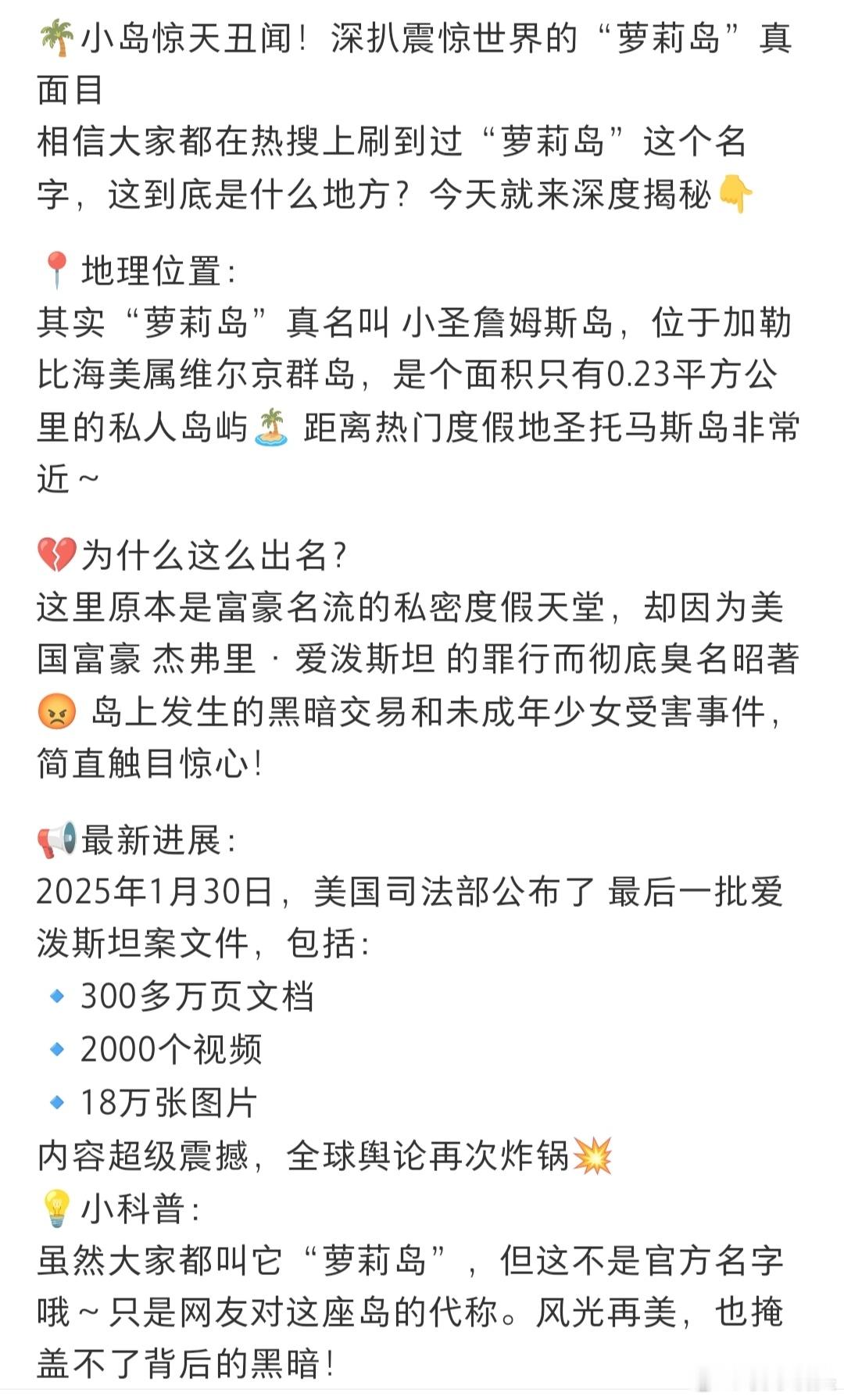 萝莉岛 恶魔岛你可以叫这个岛恶魔岛,也可以叫这个岛萝莉岛。但我希望大家永远记住,这个岛是萝莉岛。曾经有无数萝莉在这个岛上受苦受难。而恶魔不仅仅只是在这个岛上,这只是恶魔们停留的一个地方之一。这些恶魔到现在依旧逍遥法外。