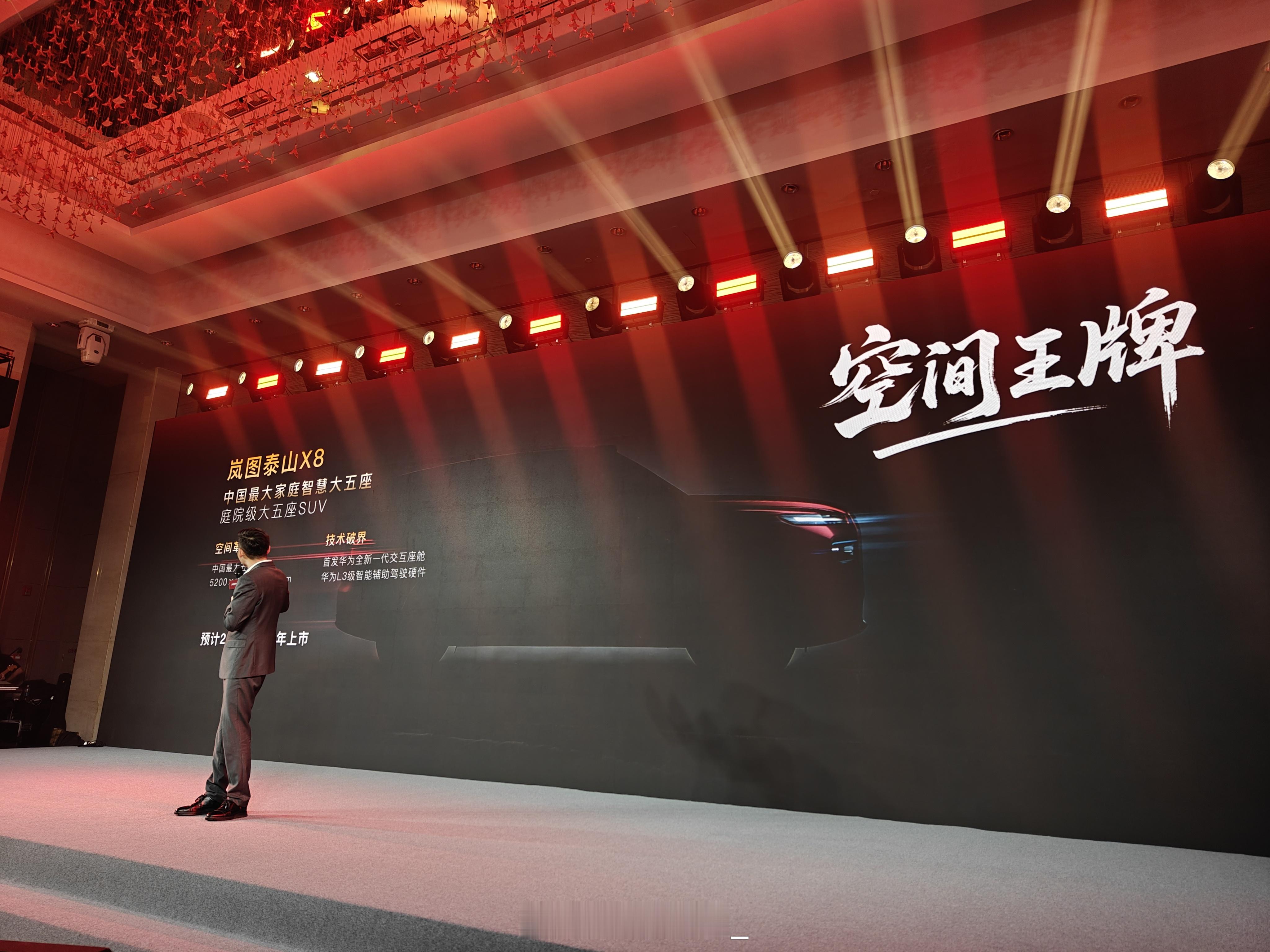 岚图泰山X8预计2026年上半年上市这个命名更明显啊 今天刚公布的极氪8X命名接近也是定位为大五座但这台尺寸非常大,5米2的大五座而且还会首发华为最新一代座舱包括华为ADS Ultra