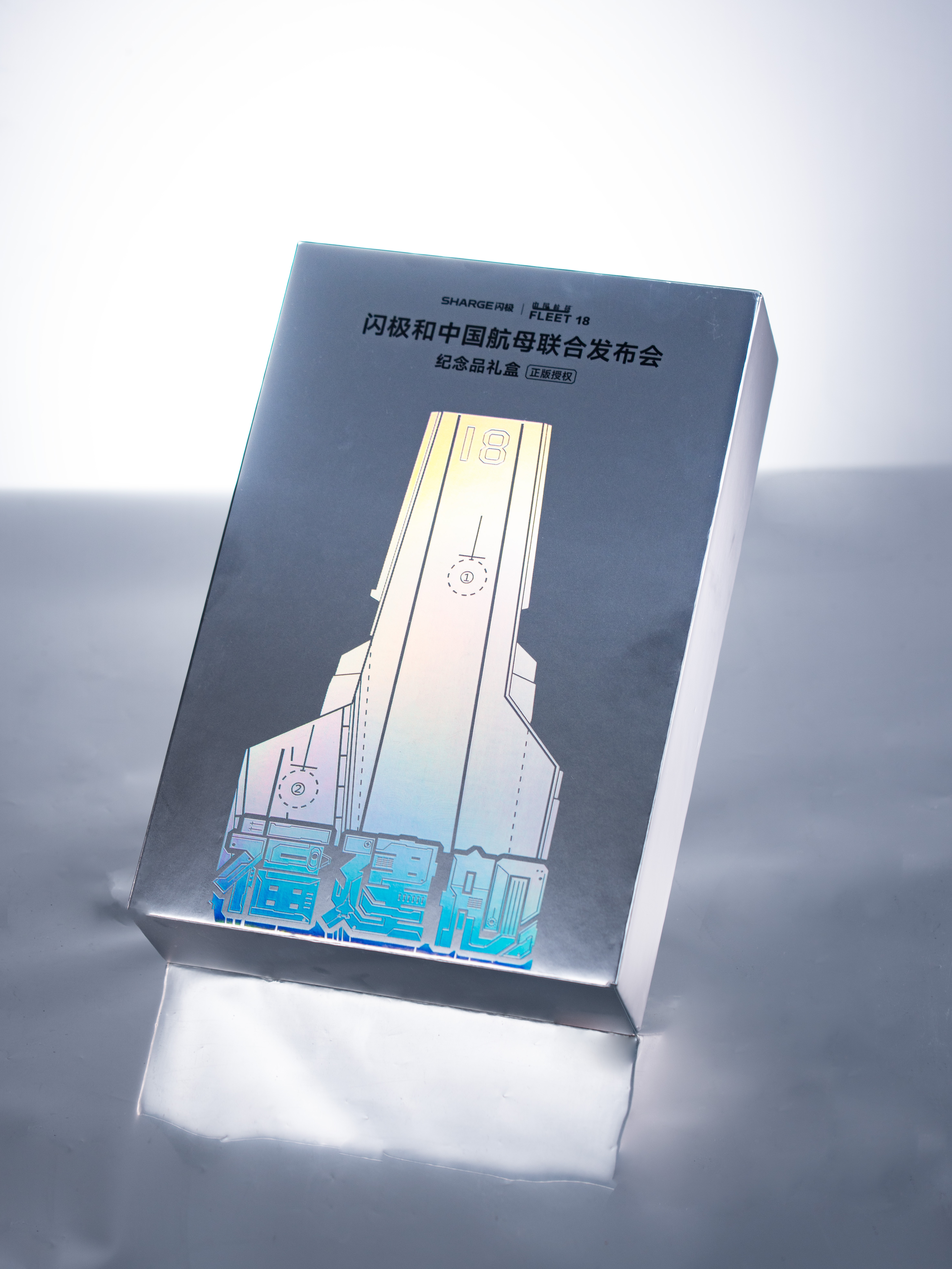 收到了闪极限定礼盒。里面有3D打印眼镜、充电宝、中国航母冰箱贴。