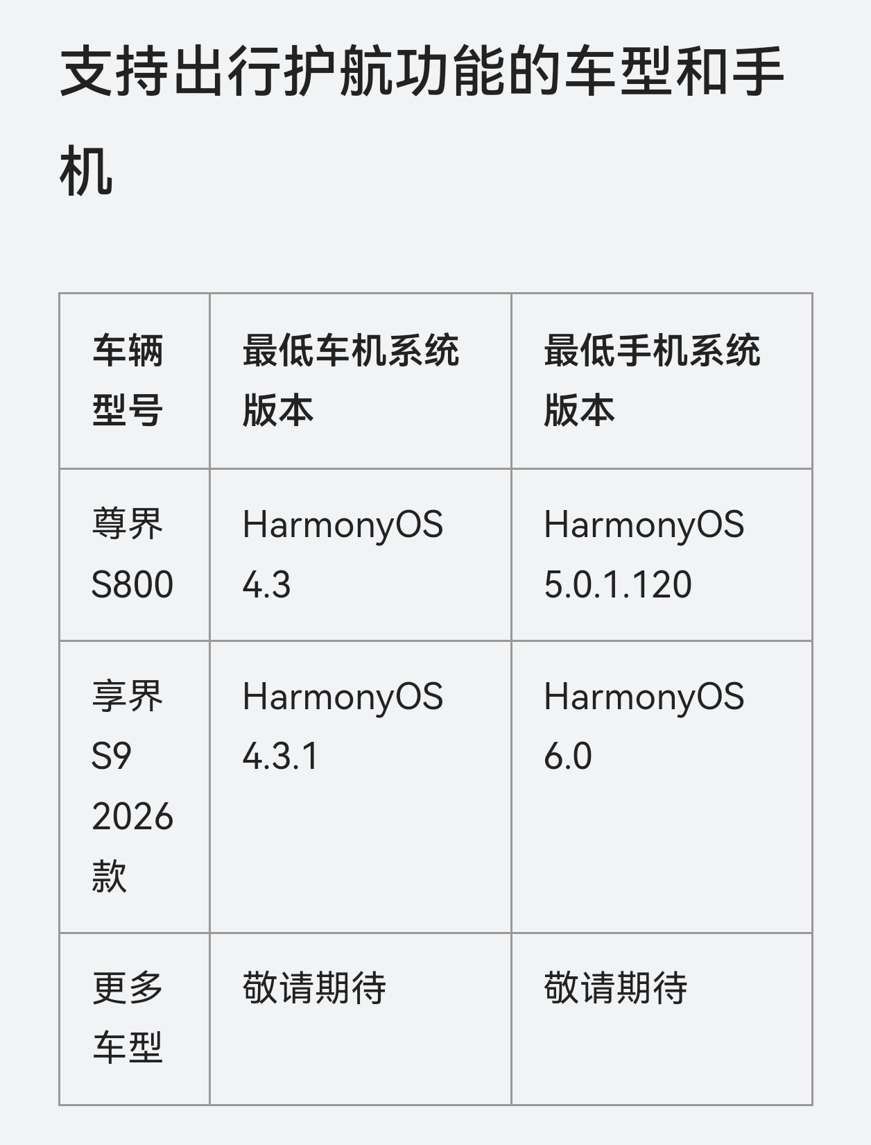 手机推送了一个出行护航的设置,看了一下支持车型只有尊界S800和享界S9,享界的