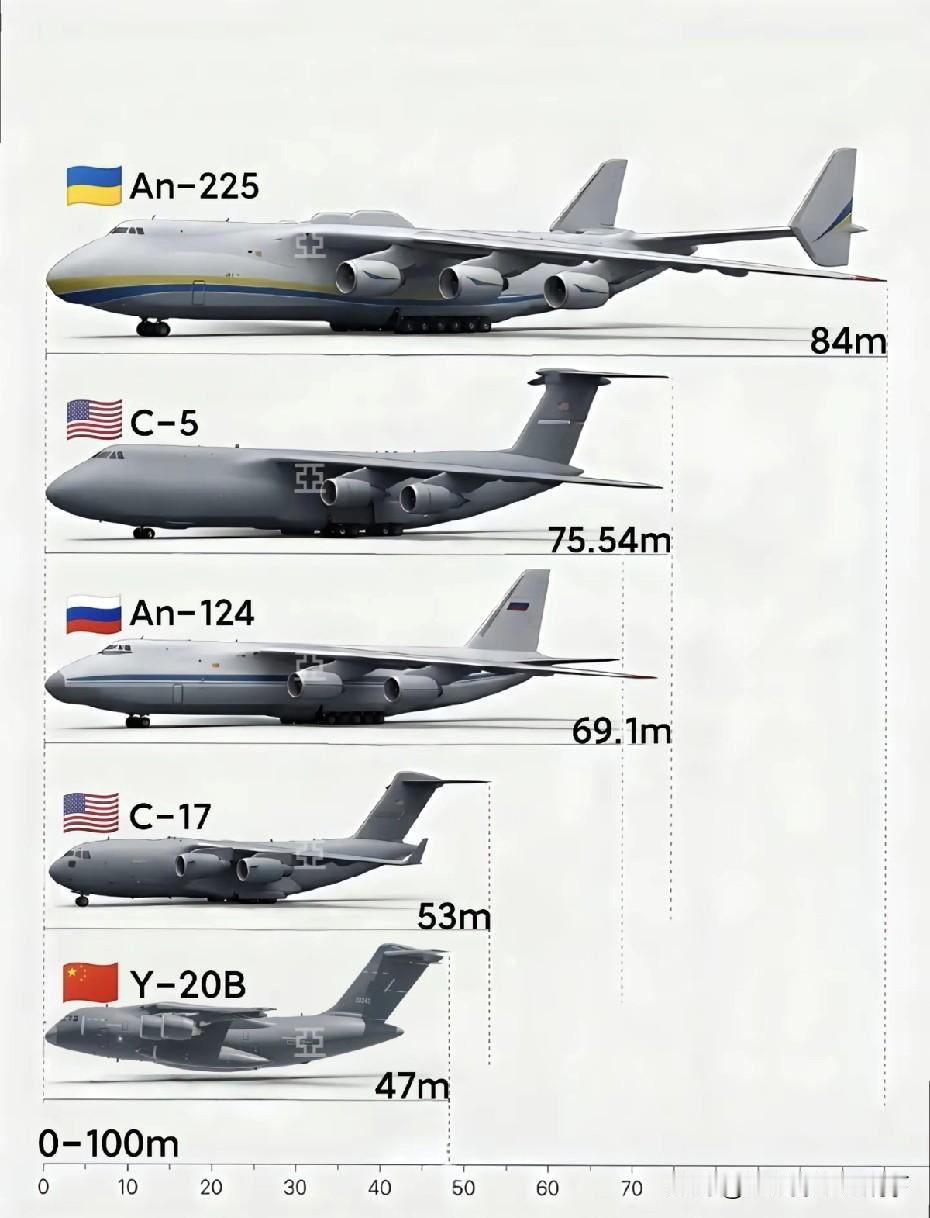 世界上最大的运输机对比!原来C5比安124长那么多,但是载重好像还没有安124高吧? 不过不懂军事的都以为飞机是越大越好呢。其实咱们运20这种体型大小的运输机是经过实战检验后得出的最实用的主流的战略运输机大小。原因是制造成本经济实惠,皮实耐用维护简便,对起降机场要求较低,便于战时投送,是部队使用需求最高的类型。更大的运输机其性价比效能比反而呈下降曲线了。 感觉无论是美国还是俄罗斯还是咱们中国后面不会造这种超大型的飞机了,实际应用不大,未来绝对是在近地球轨道去造飞行物,而不是在大气层内,这种庞大的飞机在大气圈内作用低太多了。