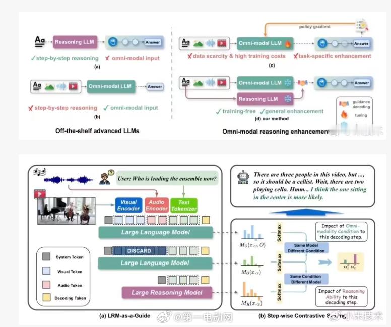 4️⃣ 《ThinkOmni: Lifting Textual Reasoning to Omni-modal Scenarios via Guidance Decoding》作者:管一然,涂思凡,梁定康,朱泠皞,鞠建忠,罗振波,栾剑,刘禹良,白翔摘要:提出无需训练的全模态推理引导框架,将文本推理能力迁移至多模态场景,实现感知与推理的动态平衡。