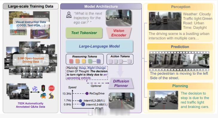 7️⃣ 《ReCogDrive: A Reinforced Cognitive Framework for End-to-End Autonomous Driving》作者:李永康 *,熊凯昕 *,郭翔宇,李方,鄢思旭,许刚伟,周丽君,陈龙,孙海洋,王兵,马昆,陈光,叶航军,刘文予,王兴刚摘要:提出强化认知驾驶框架,融合视觉语言模型、扩散规划与强化学习,实现安全、舒适且高效的端到端自动驾驶。