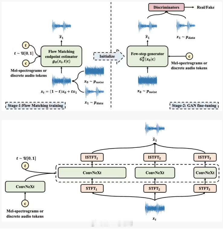 6️⃣ 《Flow2GAN: Hybrid Flow Matching and GAN with Multi-Resolution Network for Few-step High-Fidelity Audio Generation》作者:姚增伟,康魏,朱涵,郭理勇,叶凌轩,匡方军,庄伟基,李肇庆,韩志峰,林珑,Daniel Povey摘要:结合流匹配与生成对抗网络,实现少步甚至单步的高保真音频生成,在音质与效率间取得优越平衡。
