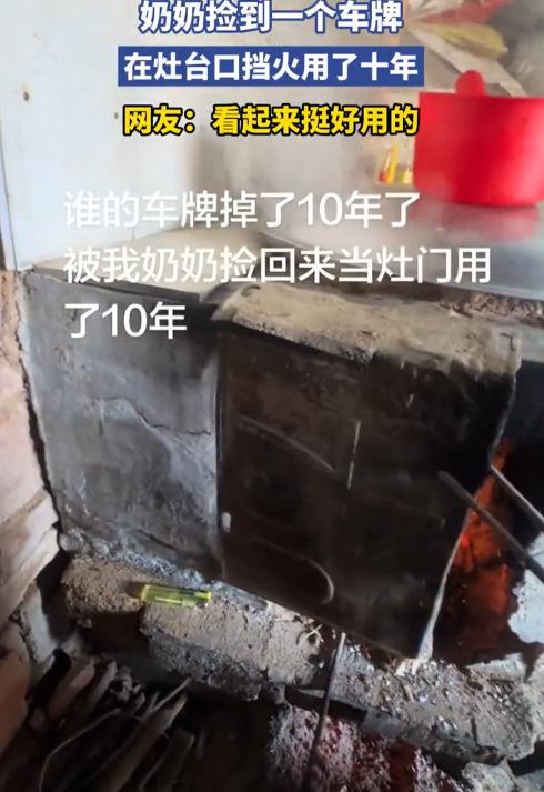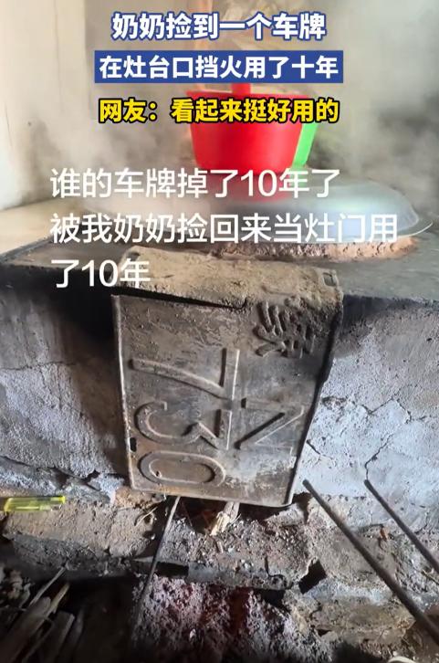 人怎么能这么聪明!河南,一老奶奶在菜地里捡到一个车牌,但她并没有随手扔掉,反倒是拿回家放到灶台上用来挡火,而且一用就是10年,完全没有任何违和感,网友:什么时候规定灶台也要上牌了? 近日,河南商丘一位老奶奶的日常举动意外走红,起因是一块在灶台上用了十年的“挡火板”,仔细一看竟是一块机动车车牌。 十年前,老奶奶在自家菜地里干活时,偶然捡到了这块豫N开头的车牌。 当时车牌已经有些陈旧,看不出完整的蓝底白字,老奶奶没多想,觉得扔了可惜,就顺手捡回家,原本只是想先放着,说不定哪天能等到失主。 等了几天,始终没人来寻找,村子里信息闭塞,也没法通过其他渠道联系失主,这块车牌就暂时被放在了灶台边。 后来老奶奶做饭时,发现灶火容易溅出来,担心烧坏旁边的木质灶台,瞥见一旁的车牌,比划了一下大小,发现刚好合适,就找了螺丝把它固定在灶台口,当成挡火板用,没想到这一用,就用了整整十年。 平日里做饭,灶火反复舔舐,火星不断飞溅,这块车牌却格外结实,稳稳挡住火星,守护着灶台安全,边角被烟火熏得发黑,上面的属地标识和数字却还能看清,成了老奶奶做饭时最顺手的帮手。 邻居们看到后,也曾劝老奶奶换一块专门的挡火板,可她总笑着回应,这东西用着挺好,没必要浪费。 在老奶奶眼里,没有真正的“废物”,只要用对地方,就能发挥用处,就像裂了缝的碗能栽葱,旧衣裳能糊鞋底,这块捡来的车牌,就是恰好能用的挡火板。 这件事被放假回家的孙子发现后,拍下来分享到网上,很快引发热议。 网友们纷纷调侃,“什么时候规定灶台也要上牌了”“这怕是最硬核的动火证”,还有人开玩笑说,想知道原车主的心理阴影面积。 除了调侃,更多人被老奶奶的勤俭和生活巧思打动,感叹老一辈把物尽其用刻进了骨子里。 不过也有网友提醒,根据交通法规,捡到车牌后应及时上交交警大队或通过12123交管APP联系失主,切勿自行使用或随意处置,车主丢失车牌后也可通过正规渠道补办。 想必这块车牌的原车主早已补办了新牌,才让它在老奶奶的灶台上,留下了这段特别的十年记忆,藏着最真实的烟火气。 以上都是个人观点,对此您有什么不同的看法,可以在评论区留言讨论!!!