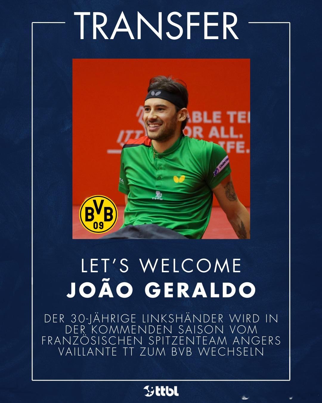多特蒙德乒乓球俱乐部为下一赛季的德甲联赛签下两位球员🏓🇩🇪维姆·维东斯霍特、🇵🇹若奥·格拉尔多