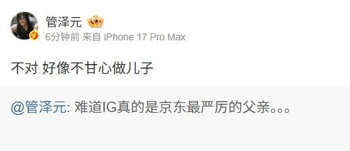 管泽元看JDG逆转IG:不对 JDG好像不甘心做儿子