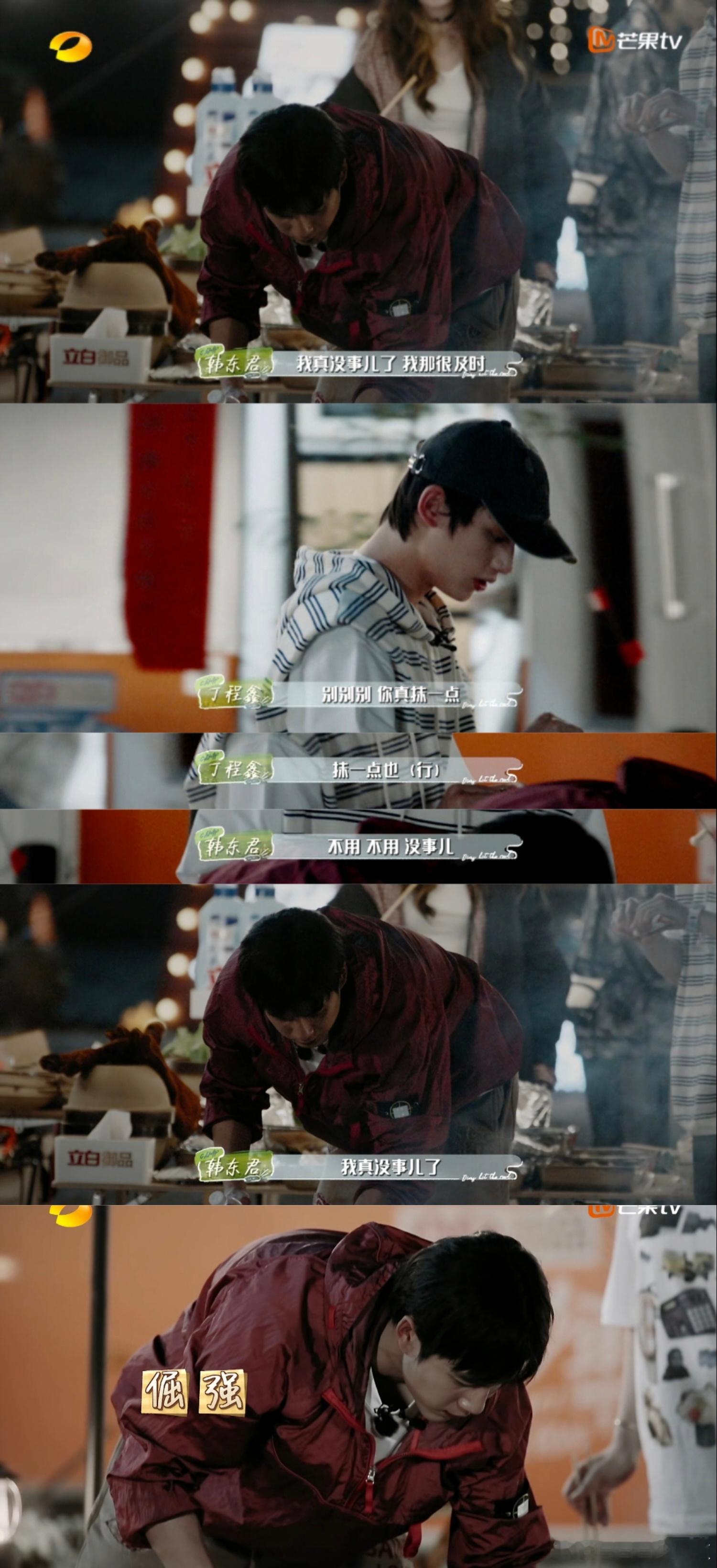 该犟的时候不犟这个时候犟,韩东君你个犟种,刚看个头他在那弄烧烤弄火的时候我就感觉他一会得烫着。。