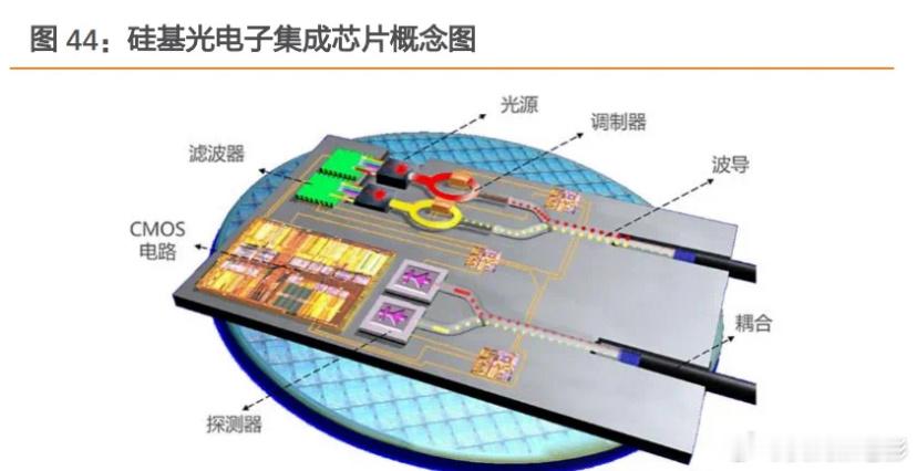 2.1 核心优势(1)高集成度:采用CMOS工艺实现高度集成,体积远小于传统分立光引擎(各光器件独立制备再进行封装)。(2)低功耗:利用光通路传输替代电路,光信号传输无电子损耗。(3)低成本:利用CMOS工艺规模化生产,硅基材料供应链成熟。(4)高速率:硅禁带宽度突破电子互连的带宽瓶颈。
