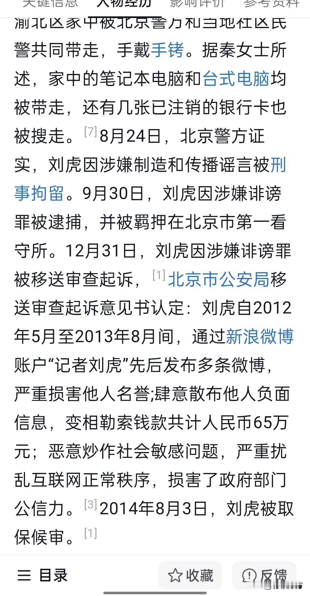 再来说一下刘虎案。2013年刘虎就曾因涉嫌诽谤罪被刑拘,在被关押 340多天后取保候审,2015年由检察院以定证据不足不予起诉。那么办案人员被追责了吗?根据公开信息,未看到有追责的程序。而根据律师解读,因存疑不起诉而追责的概率很小。 这大概可以解释调查记者为什么越来越少,而刘虎的坚持又是多么难能可贵,因为对方可以以极小的成本让他身不由己。这个人说难听点就是死性不改,说好听点是百折不挠,就是死脑筋,而死脑筋通常就会有点可怕,或者可敬。[笑哭]