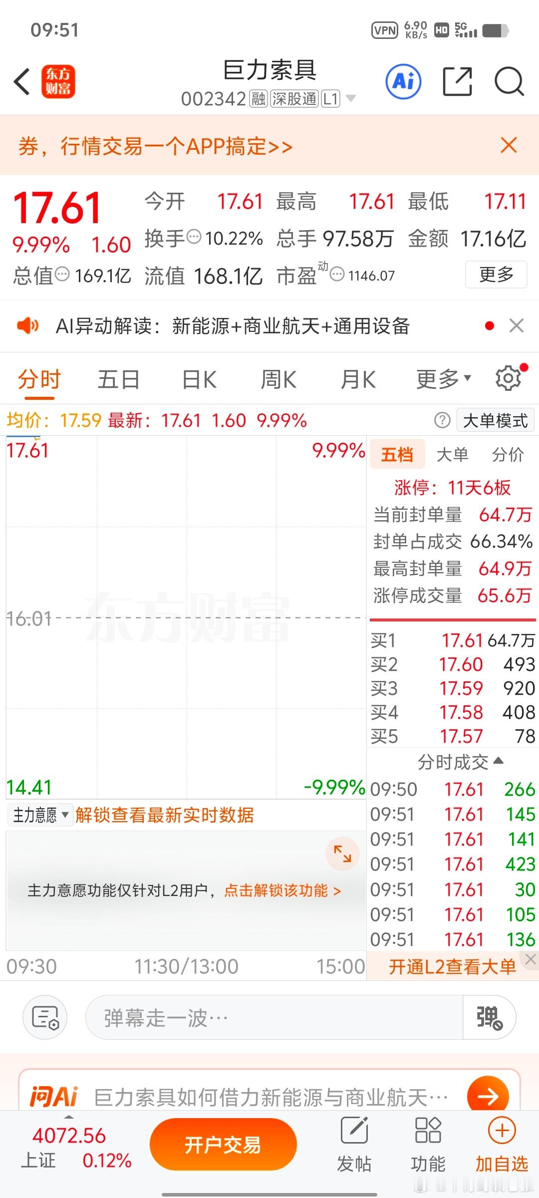 战友们!昨日我们早上操作的(巨力索具002342)!今天继续一字板,不需要动,真金白银的大丰收!又添浓墨重彩的一笔!这就是跟着黑操作的底气!