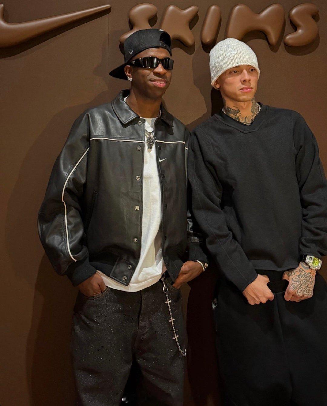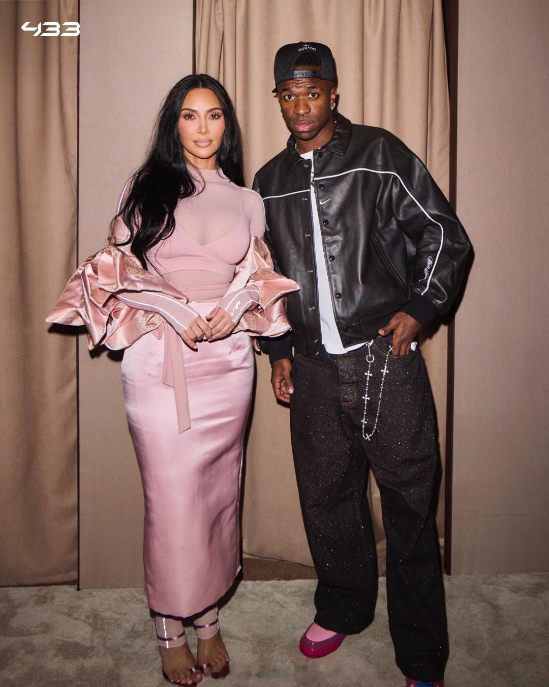 【跨界合作】法国巴黎,皇马边锋威尼修斯,与名媛金卡戴珊共同出席品牌活动。