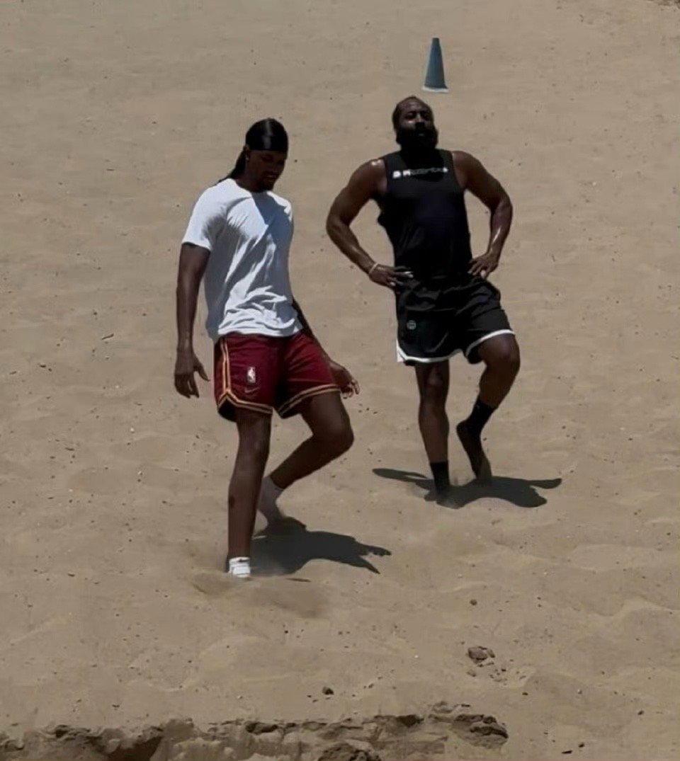 美媒po出旧照:在此前休赛期,哈登曾和莫布里一同训练过哈登被交易至骑士哈登加兰互