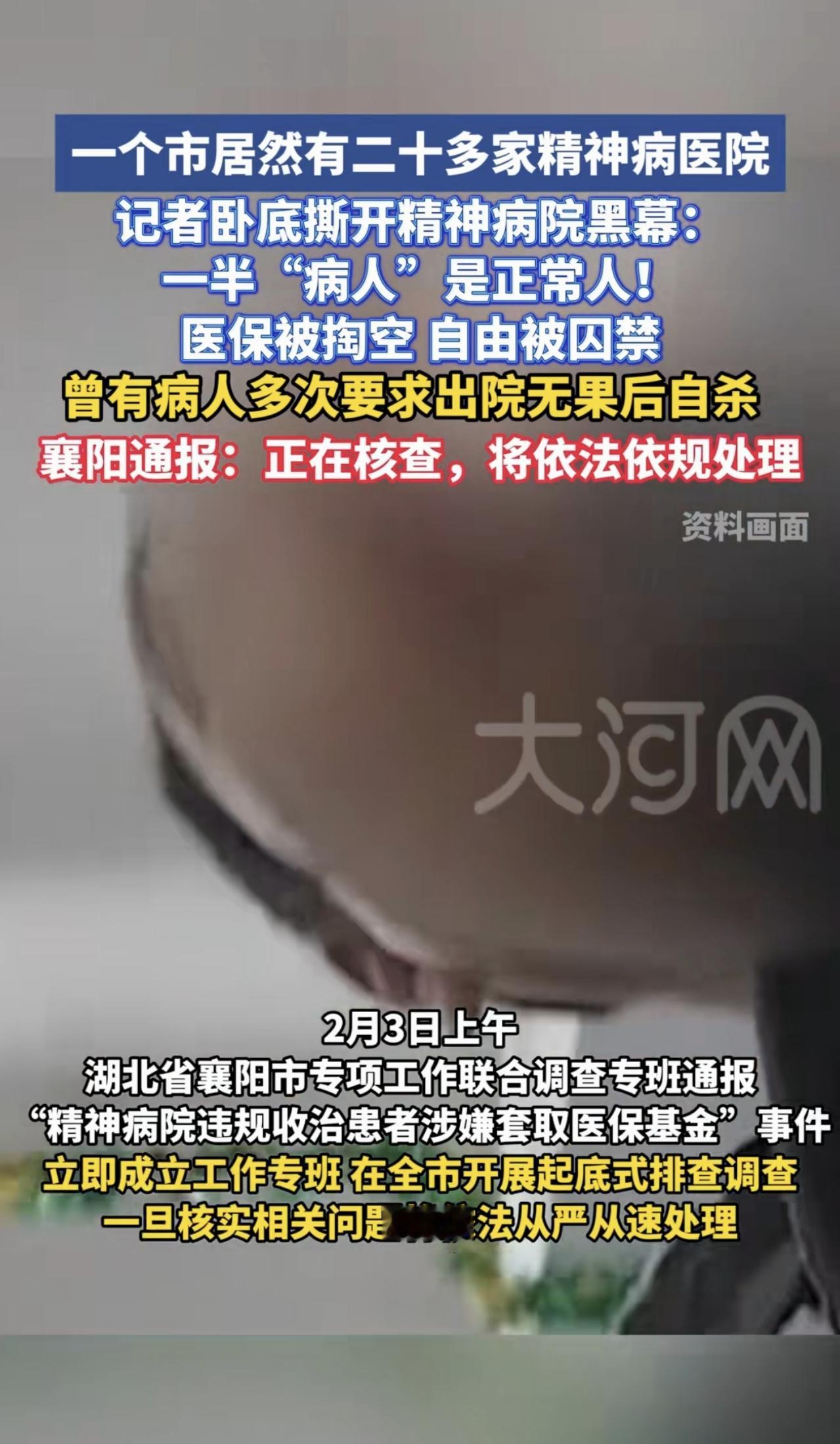 首先为新京报点赞! 记者卧底挖出黑幕! 湖北襄阳这下全国出名,一个市竟然有二十多家精神病院,这地方得有多少不正常的人啊? 在这个刚过去的寒冬,镜头并没有对准繁华的都市商圈,而是推进到了湖北襄阳的一间病房里。 画面并没有想象中的歇斯底里或死气沉沉。相反,几位被鉴定为“重症精神病”的患者,正围坐在一张桌子旁,神情专注地打着“掼蛋”。 这不仅是一场牌局,更是一场智力的博弈。出牌逻辑严丝合缝,算牌记牌脑子清清楚楚。如果不看病历卡上那个惊悚的“精神残疾”标签,你会以为这是某个社区活动中心的退休老友局。 但这正是最荒诞的地方。牌桌上的逻辑是正常的,牌桌外的世界却疯了。 就在襄阳这么一个地级市,竟然密集地冒出了二十多家精神病医院。这个数字摆在桌面上,本身就是一种极不正常的“病态”。除非这里的风水有什么特殊之处,否则单靠自然发病率,根本撑不起这么多家专科医院的生意。 既然市场没有那么大的需求,那就人为制造需求。 卧底记者的镜头,撕开了这层画皮。这些医院抛出的诱饵简单而粗暴——“免费”。 免医药费,免生活费,甚至承诺可以“常年居住”。对于那些家境贫寒、或者无力照料家中失能人员的家庭来说,这听起来像是天上掉下来的馅饼。 但我们都知道,商业逻辑里从来没有真空的免费。 当家属把人送进去,以为甩掉了一个包袱,医院却迎来了一棵摇钱树。这些被收治的人,身体成了医院向医保基金提款的筹码。 在这个围墙之内,现实上演了一出魔幻剧。部分医疗机构为虚增参保相关结算数据,违规安排内部人员虚构就诊流程,通过身份与诊疗场景的虚假转换套取医保基金,此类违规操作已违背医疗行业规范与基金监管要求。 部分体格健壮、从事护工、安保等职业的人员,其姓名被列入相关住院诊疗名册,还出现在费用结算单据中,被记录为接受对应诊疗服务。 而那些真正的病人呢?他们并没有躺着享福。洗碗、扫地、刷洗锅具、清洁卫生间,乃至搬运各类物资,这些日常杂务与体力劳作,本应由专人负责照料,却全都落到了病患本人身上,由其自行承担。 健康的员工变成了“病人”去骗钱,生病的患者变成了“苦力”去省钱。这一进一出,资本的算盘打得噼啪作响。 整个链条清晰得令人发指:假诊断、假治疗、假出院。 医院需要的不是治愈,而是滞留。 这就解释了为什么会出现“入院容易出院难”。一旦跨进那道门,人身自由就被剥夺了。这不是医院,这是许进不许出的猎场。 媒体报道中那个令人心碎的细节:有绝望的病人因为多次要求出院无果,最终选择了自杀。这早已偏离了医者救死扶伤的初心,背离了医疗行业的公益本质,演变成了以患者为牟利对象、过度逐利的不良现象,全然不顾病患的切身利益与就医感受。 现在,当地政府的反应很快,联合调查组成立了,说是要全市起底排查。 这种“事后诸葛亮”式的雷霆手段,我们见得太多了。但在调查组进驻之前,有一个更尖锐的问题必须被抛出来。 精神病医院不是路边摊,想开就能开。它是特种医疗机构,有着极高的审批门槛和严格的监管标准。 这二十多家机构当初是怎么拿到牌照的? 当一家路边的普通诊所摇身一变成为医保定点医院,这中间的审批环节,是不是只有“失察”这么简单? 如果监管的大门是紧闭的,这些所谓的医院又是如何如野草般疯长,甚至形成了一个庞大的“骗保产业群”? 舆论的怒火不应只烧向那些黑心的院长。 那张病房里的“掼蛋”桌,讽刺的不仅是虚假的病情,更是这一整套千疮百孔的监管体系。 眼下的调查,希望能拔出萝卜带出泥。如果只是关停几家医院,抓几个现行,而不去切除滋生这些毒瘤的权力土壤,那么下一场“掼蛋局”,恐怕很快又会在某个角落悄悄开场。 参考信息:记者卧底调查精神病医院骗保内幕:承诺免费住院,入院容易出院难,“住院相当于坐牢”,曾有病人多次要求出院无果后自杀2026-02-03 08:50·大河报