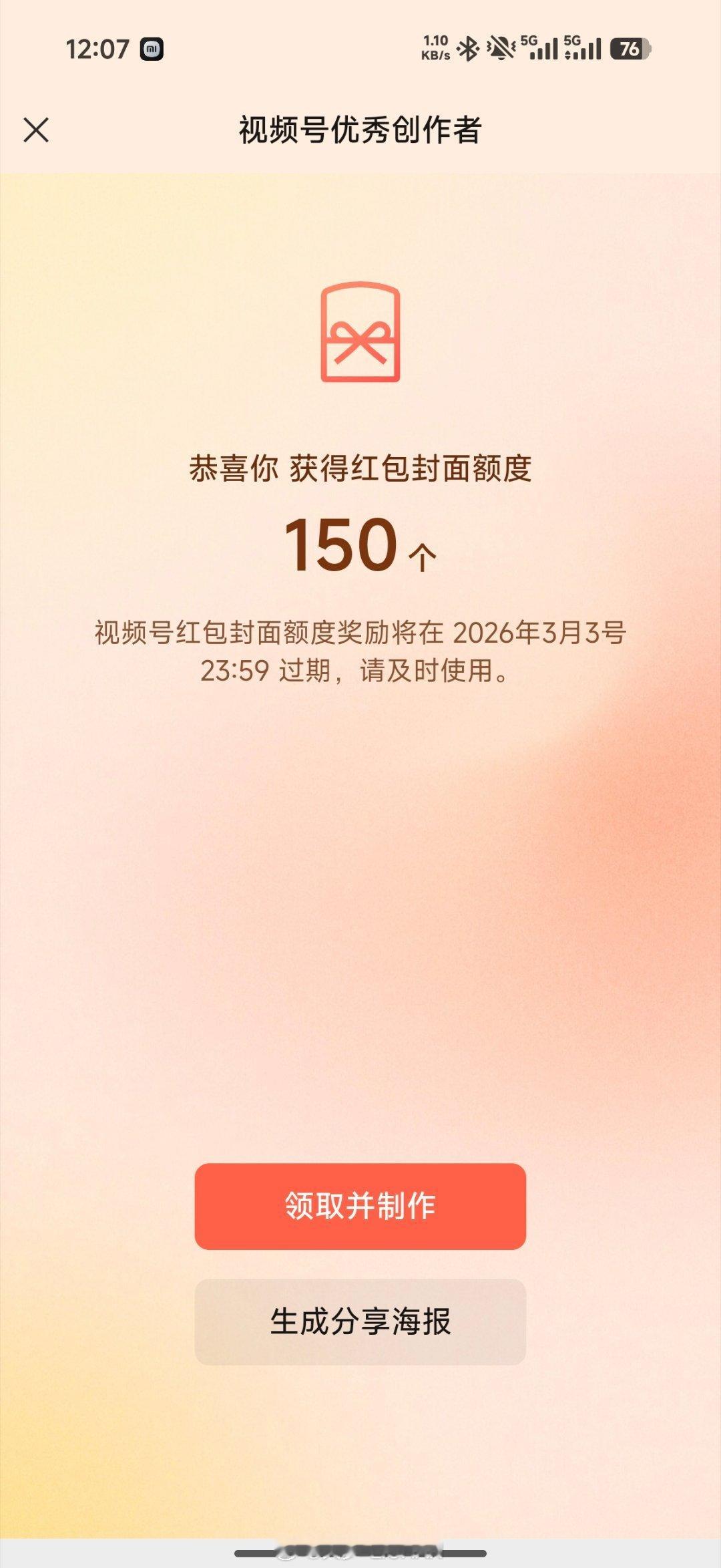 视频号给我颁了个优秀创作者,但是奖励是150个红包封面,这有啥用?