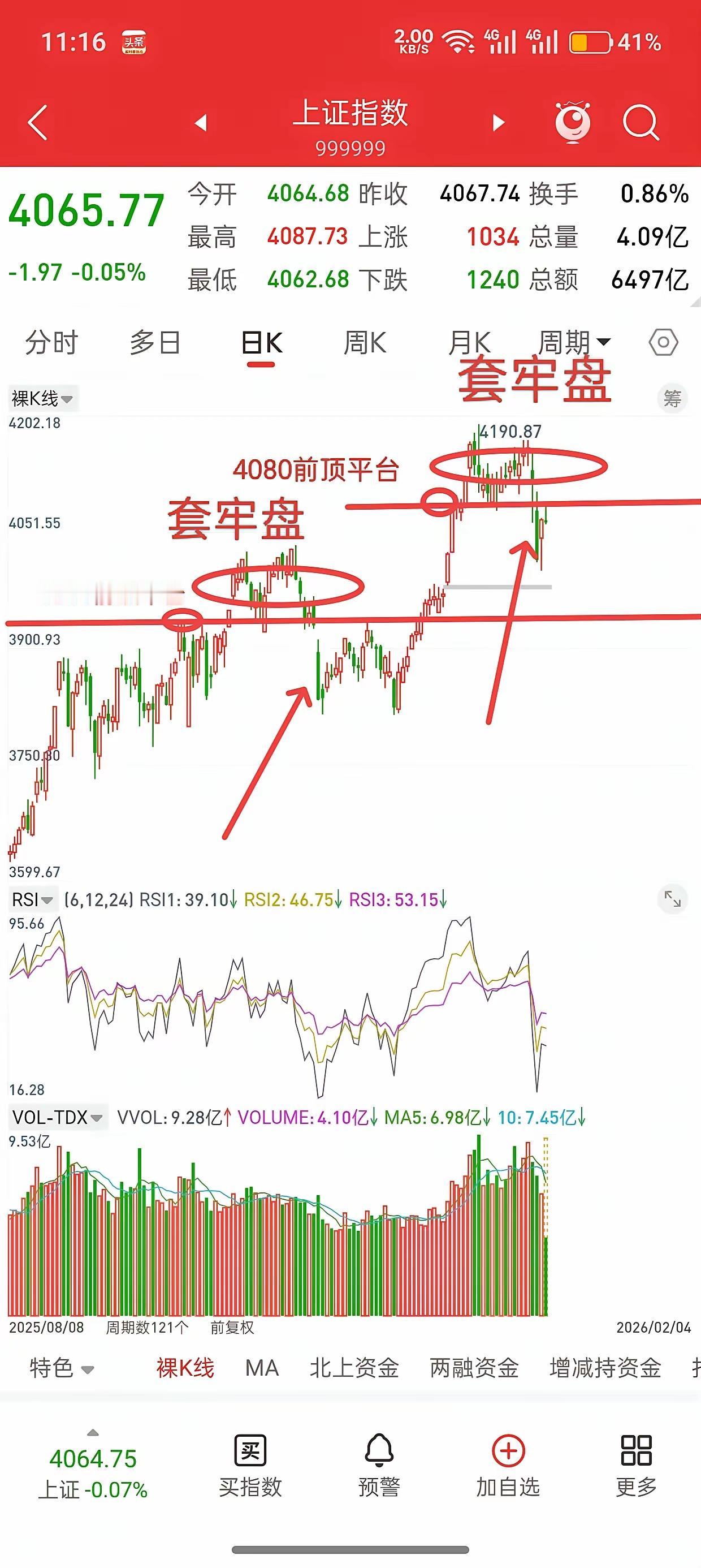 A股今天这反弹看着热闹,实则暗藏门道。反弹摸到关键位就踟蹰,明眼人都能看出,4080到4190那片全是套牢盘——前几天刚在这儿被套住的人,今天一瞅反弹到跟前,心里头正痒痒想解套跑路呢,主力哪能这么轻易当“活雷锋”? 记住个铁律:支撑位附近别做空,压力位跟前别做多。就像咱自己炒股,手里票被套到深水区,好不容易反弹到成本线边上,是不是腿肚子都打颤,就想赶紧卖掉保本?主力太懂这套了,去年11月20号那回,大盘跌破3936前顶,后来反弹刚好摸到这个数,套牢盘一涌出来,立马又砸下去,多少人在这儿割了肉? 这就跟咱散户的心态一模一样:套牢时死扛,快解套时熬不住,刚割肉就起飞。去年12月23号站稳3936之后,那波主升浪多带劲,可多少人早在之前的反复洗盘中被甩下车了? 现在4080-4190这区间,主力指定得来回折腾。一会儿拉起来让你看到解套希望,一会儿又砸下去让你怀疑人生,就是要把那些扛不住的筹码震出来。真想在这儿赚钱,得学聪明点:支撑位附近敢低吸,带好止损别硬扛;到了压力区别追高,宁可错过也别乱买。 说白了,这市场就是个“磨人精”,专挑散户心态最脆弱的时候下手。你要是熬不住那几下洗盘,就算主升浪来了,也只能站在岸边拍大腿。