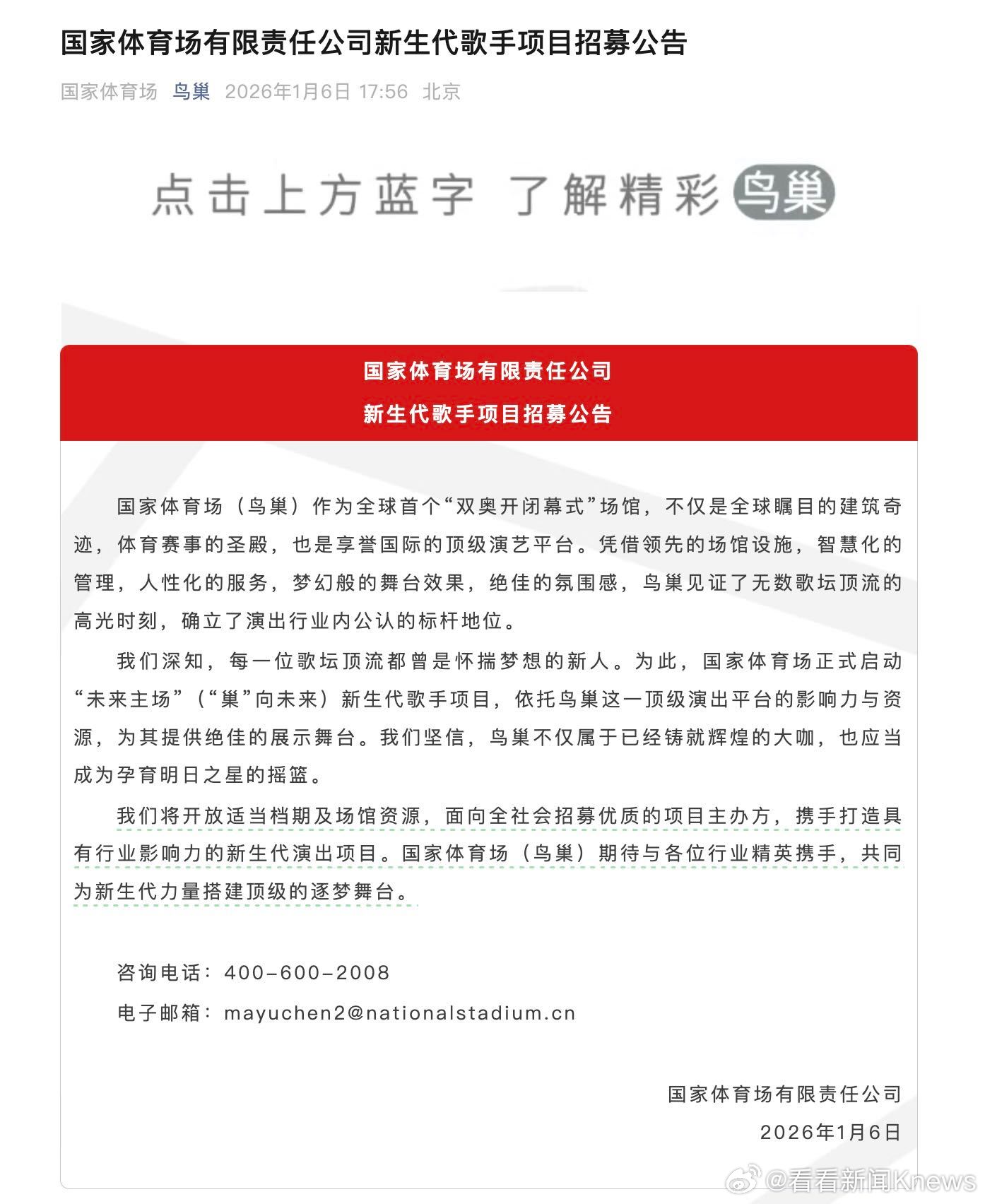 【#黄子弘凡空降鸟巢#】官宣将于2026年3月14日、15日在北京国家体育场(鸟巢)举办个人演唱会《除了快乐禁止入内:OPEN WORLD》。该演出并未出现在鸟巢原有年度排期中,而是以新增场次形式,在国家体育场官方项目「未来主场」计划特别加入,黄子弘凡也成为该计划公布后首位入选的歌手!黄子弘凡