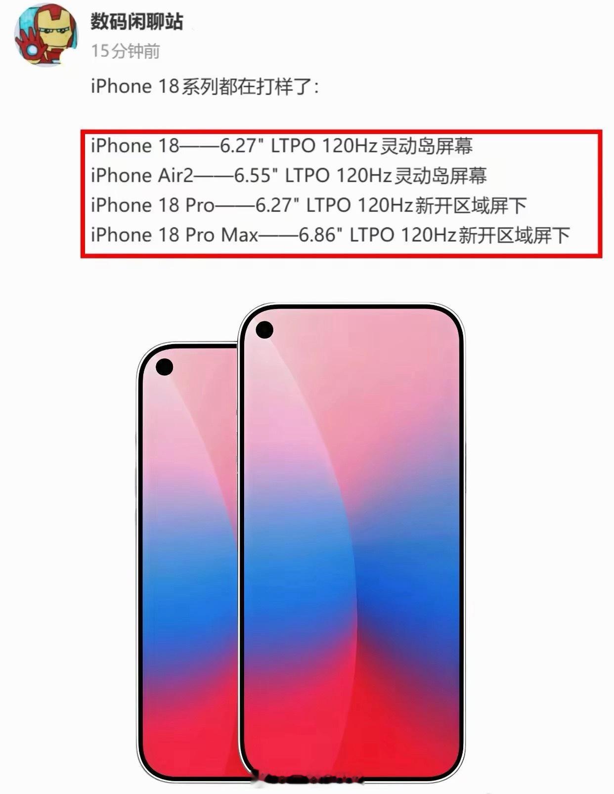 iPhone18系列外观出炉蚌埠住了iPhone18Pro屏幕真的要在左上挖