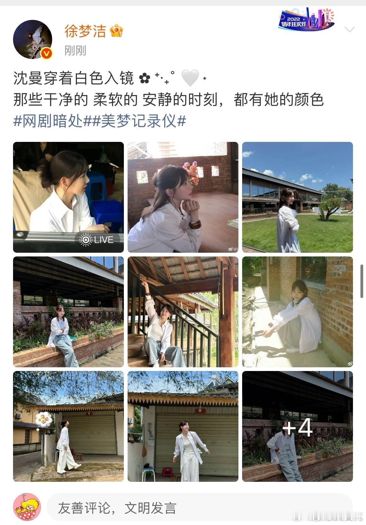 徐梦洁穿着白色入镜徐梦洁片场live图 宛若清冷明媚白月光啊