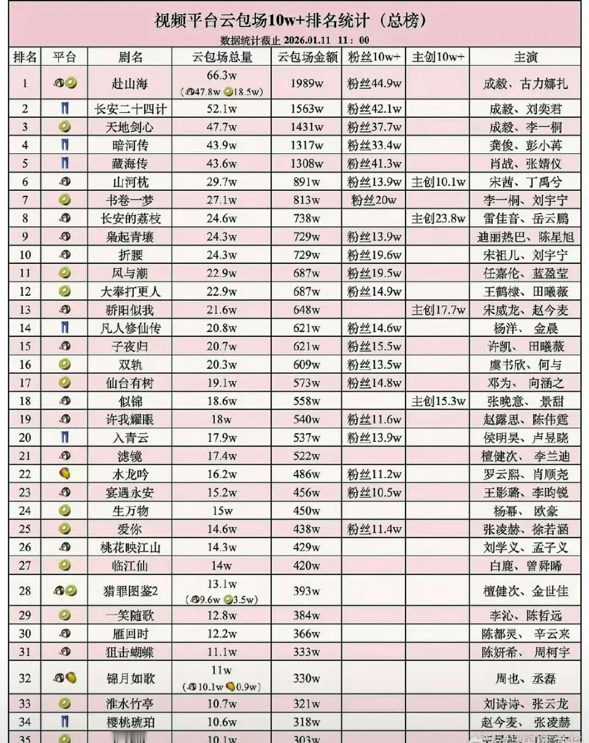 成毅赴山海拿下2025年首日点播量top1。三部剧分别拿下三平台云包场史冠,成毅扛剧生的含金量还在不断上升。成毅实力强,粉丝氪金强,路人剧粉盘大,确实是无短板的顶级演员。一人单扛,不限题材不限平台,🐮的。