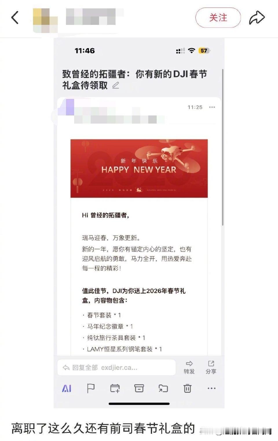 最近看到好多大疆前员工晒出意外收到的新春礼盒,该说不说这是大疆人家做得确实很敞亮啊,挺温暖人心的。对此大疆官方也回应了,这不是临时操作,而是连续多年的惯例,主要发给离职一年内的员工,礼盒和在职员工同款,今年有茶具、钢笔、马年徽章这些,虽然礼盒也许本身并非价值连城,但这份温暖无疑是礼轻情意重。 对于大疆这家企业而言,我相信大家都是很熟悉的了,在特地领域拥有着绝对的技术实力。作为一家国内科技大厂,它是有很高的“人情味”和人才策的略。离职本就是职场常态,但离职不是断交,一份年礼既感谢过去的付出,也维护了前员工关系,还顺便做了口碑传播,我觉得这比硬广管用多了,确实圈粉,这也给其他公司做了个好榜样。