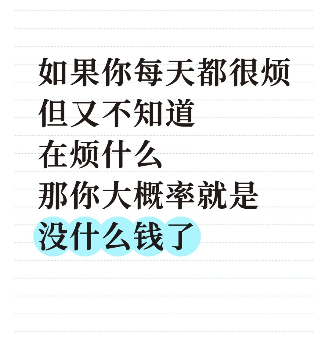 每次莫名烦躁的时候都在想自己为什么烦躁,想到最后就会发现都是因为穷