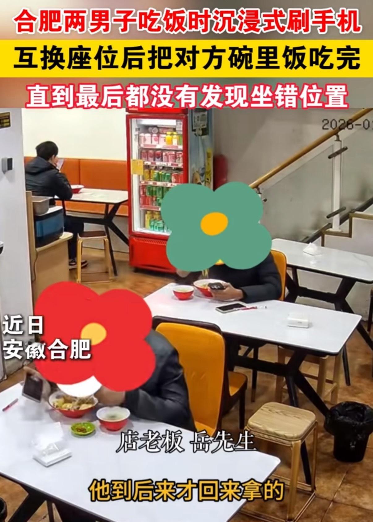2男子看手机投入互换座位吃错饭摆拍的,这家店已经不是一次两次了,上次那个晚上看不