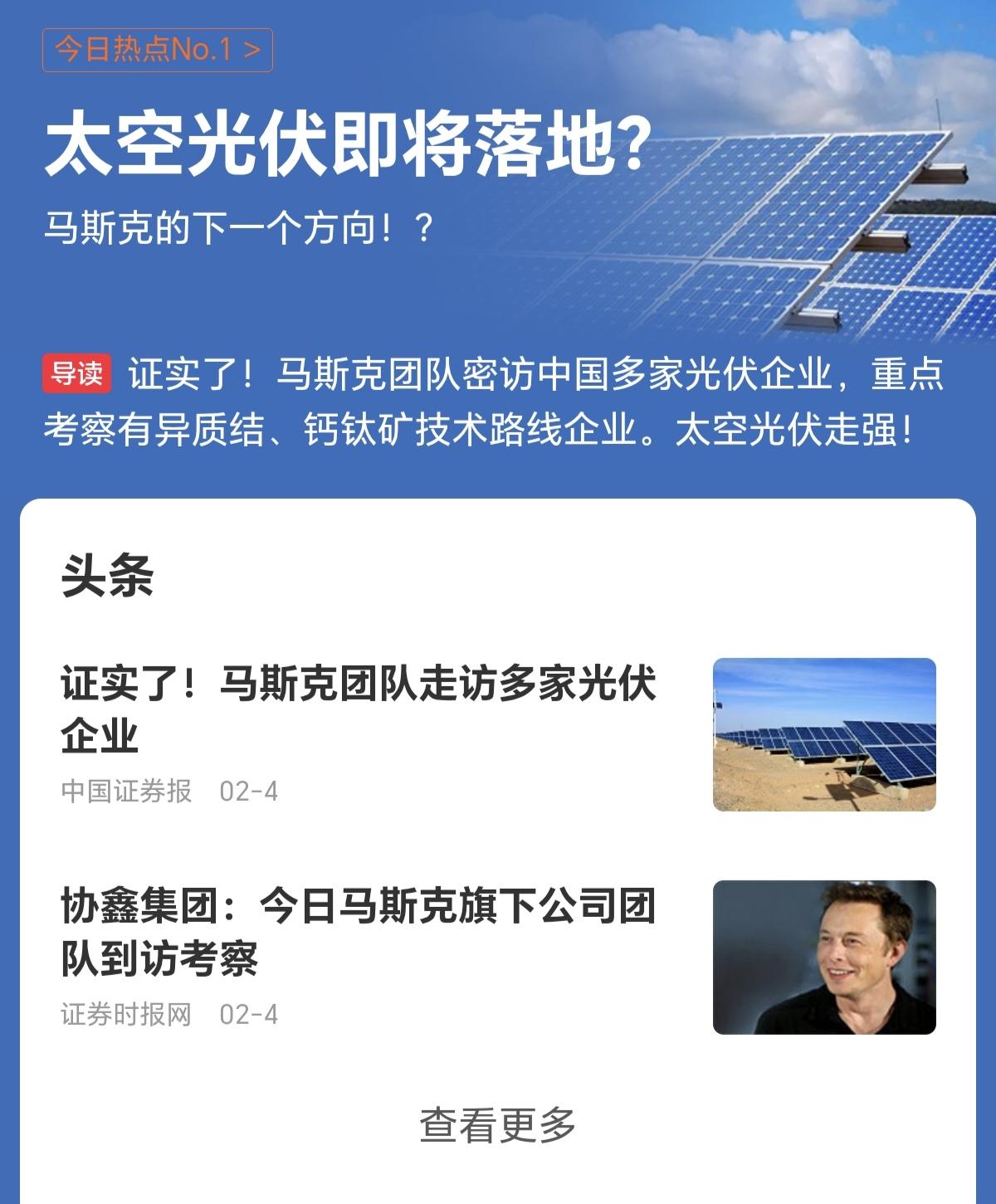 今年炒股就跟着马斯克走,马斯克说什么,什么就涨,1月份,马斯克聊商业航天和A脑机接口,商业航天和脑机接口就大涨,现在又去走访光伏企业,现在到春节期间估计就是光伏霸屏A股了。