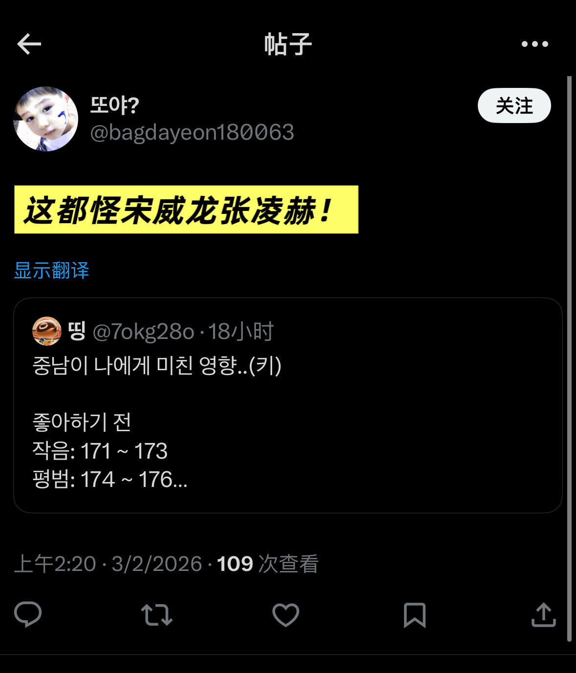 【twi】泡菜妹热议中男身高这都怪宋威龙张凌赫…