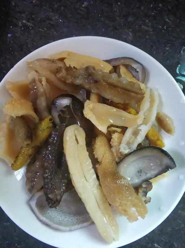 你过年最爱吃的一道菜是什么 过年最爱的菜,那必须是家常简化版佛跳墙!为了这道菜,我感觉自己都能为“杀猪宴”跋山涉水去找食材。 这佛跳墙食材丰富,鲜鲍鱼、即食辽参、干贝啥的,提香的猪排骨、金华火腿也不能少。做法虽有点小复杂,但很值得。先花1小时熬出浓高汤,再花10分钟简单处理食材,把鲜鲍鱼切十字花刀,海参切段。最后在砂锅分层码放食材,慢炖入味。一家人围坐,吃上一口这佛跳墙,满满的都是过年的味道!