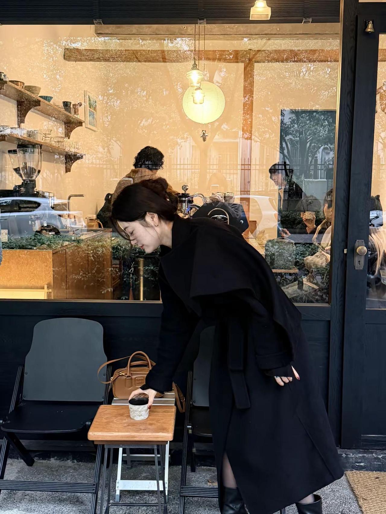 Allisblack全黑穿搭冬天的神街拍穿搭咖啡店拍照第三视角oo
