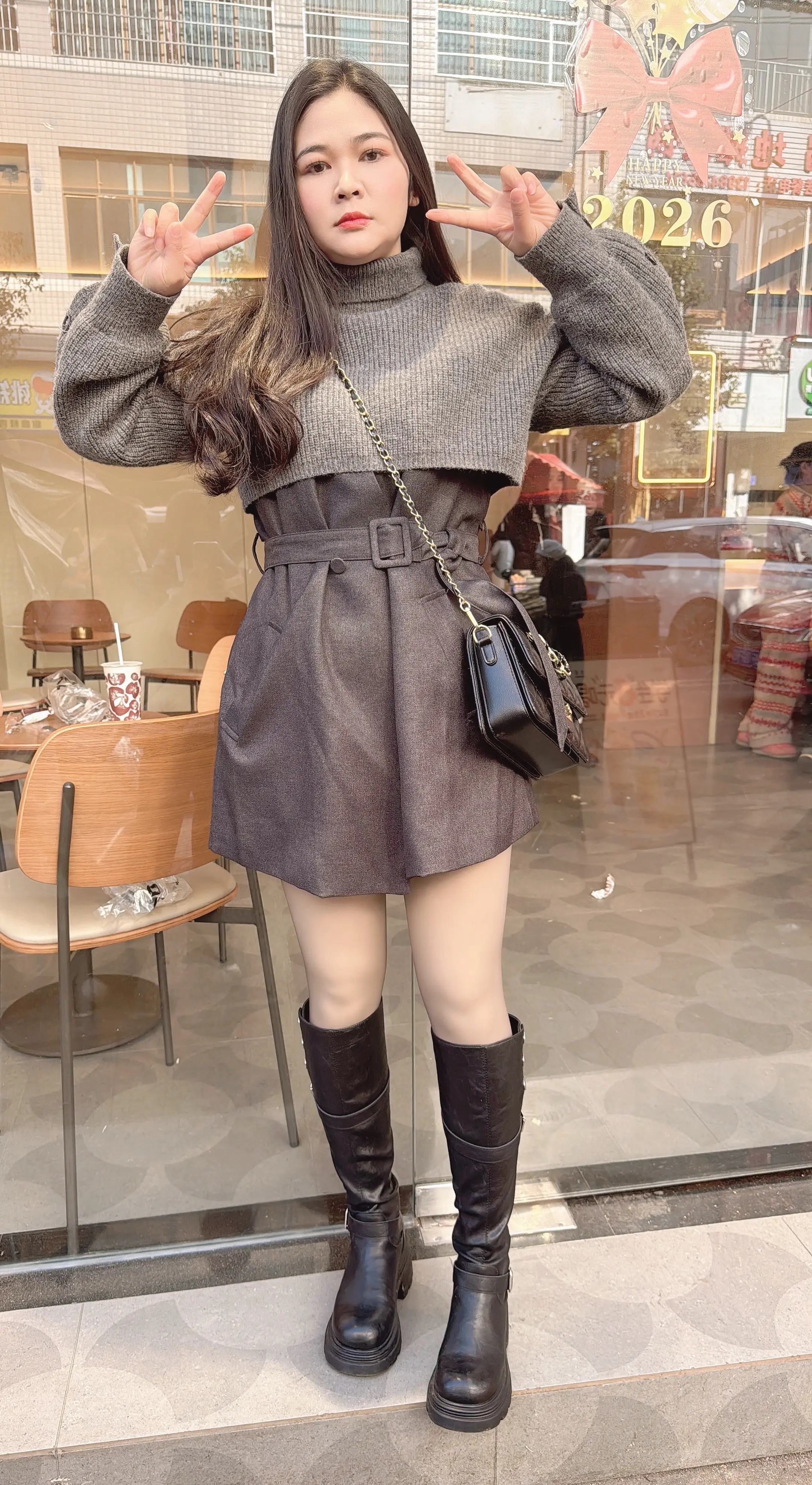灰色针织衫搭配黑丝袜,元气感少女穿搭穿搭如何穿搭会具有少女软妹感纯真少女感穿
