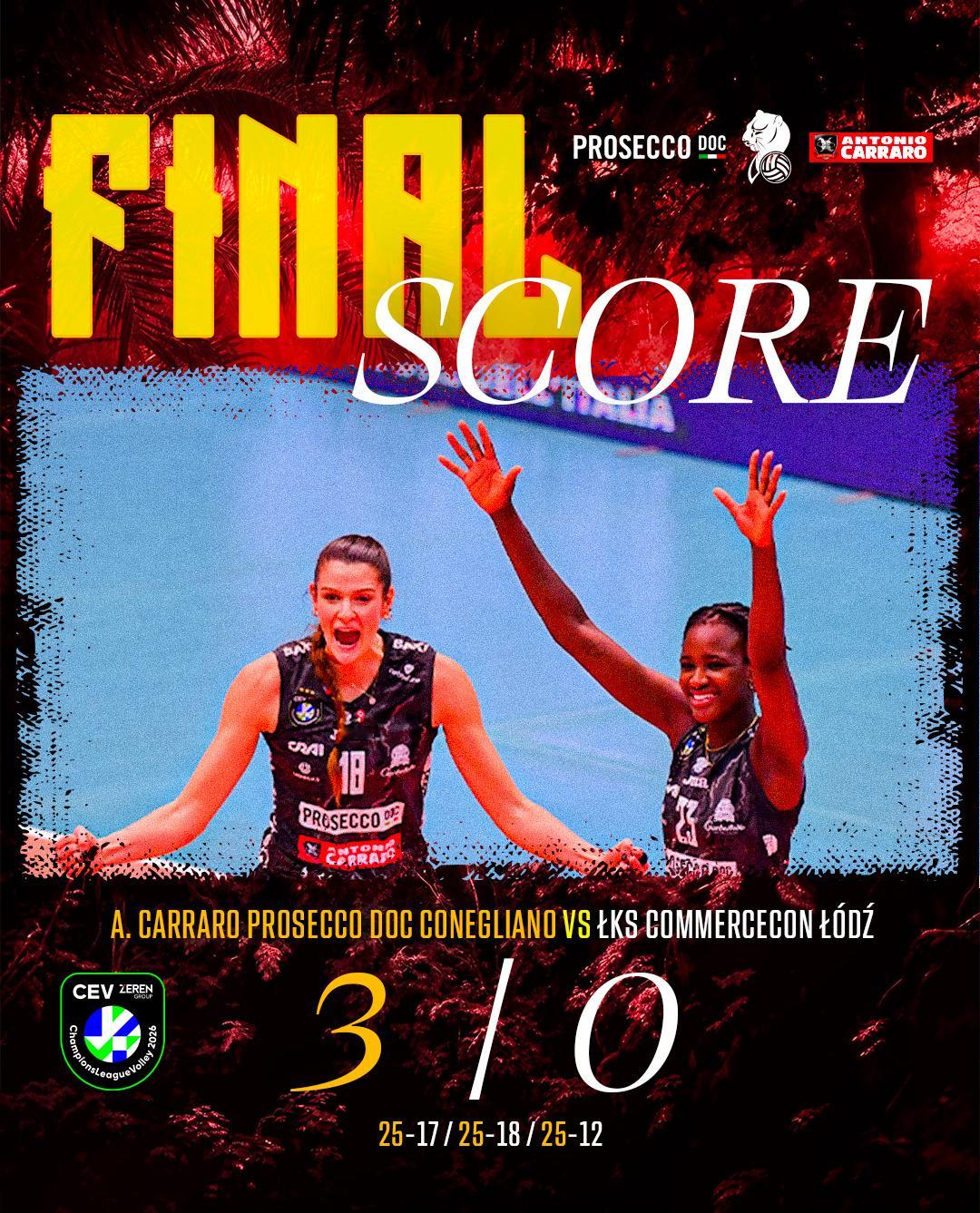 科内利亚诺3比0波兰罗兹,锁定小组第一,直通八强,朱婷15分拿下得分王!朱婷