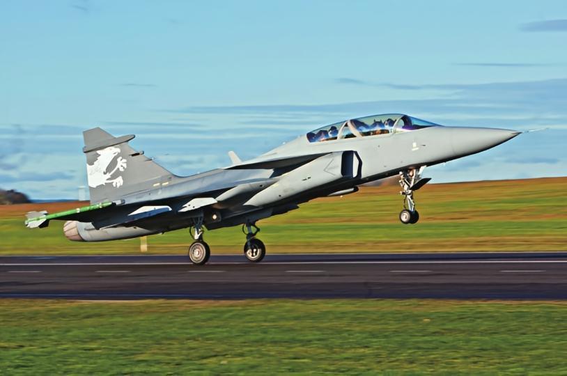 JAS 39“鹰狮”(Gripen)战斗机是瑞典萨博公司研制的单发多功能战机,其中JAS是瑞典语中的“Jakt”(对空战斗)、“Attack”(对地攻击)、“Spaning”(侦察)的缩写。该机于1988年12月首次试飞,1997年11月开始服役,主要用户为瑞典、捷克、匈牙利、泰国和南非等国的空军。